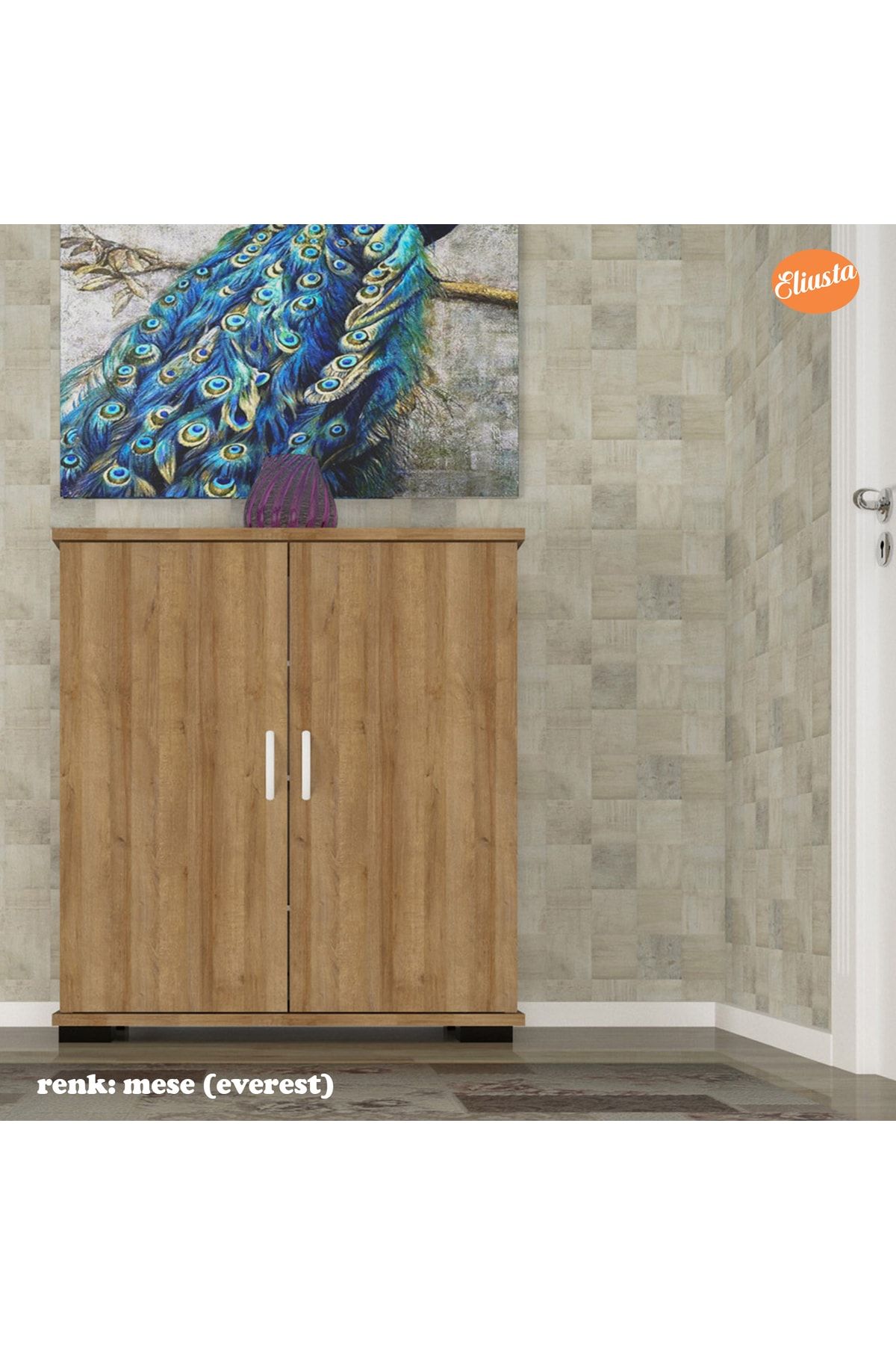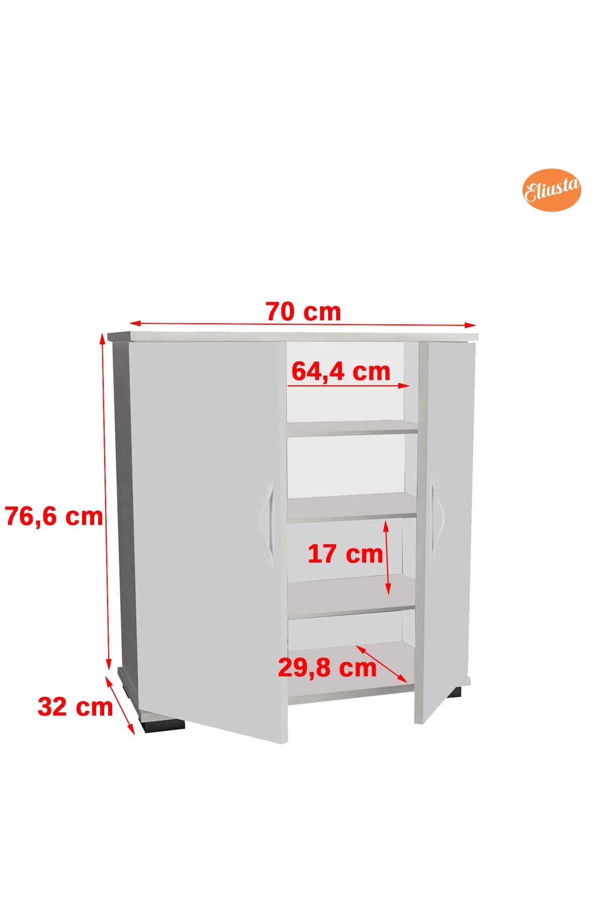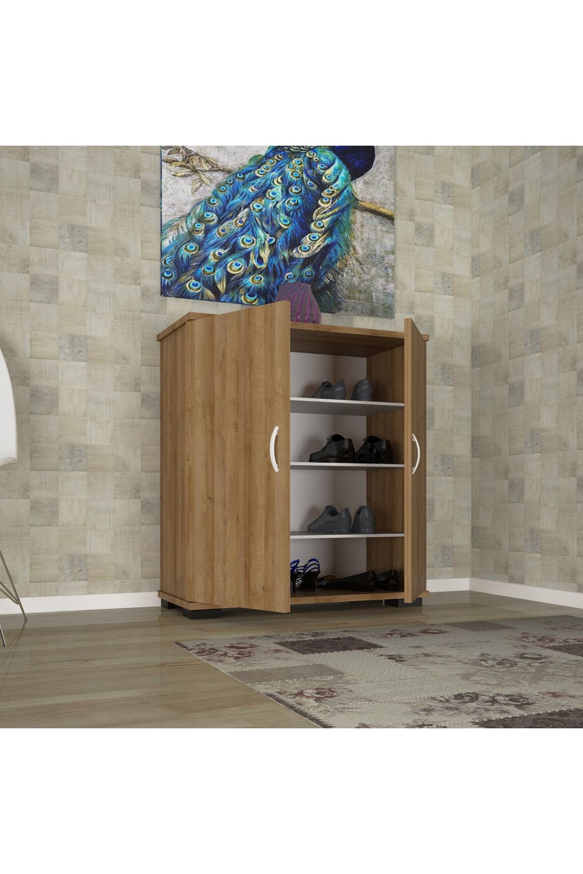 Modilayn 2 kapaklı ayakkabılık modeli; çok amaçlı kullanıma uygun tasarımıyla dikkat çeker.; Ölçüleri; genişliği 70 cm, yüksekliği 76,6 cm, derinliği 32 cm şeklindedir.; Şık ve sade tasarımı yanı sıra fonksiyonel kullanımı önceler.; 1. kalite 18 mm melamin yüzeye sahip yonga levha kullanılarak üretilir.; E1 kalite standartlarına uygun olup TSE belgesiyle güvenli bir kullanımm deneyimi vadeder.; Yonga levha malzemesindeki kenar bant PVC 0.40 ve 1 mm olarak çevrilir.; ; Kulp, menteşe ve ayak kısımları uzun yıllar sorunsuz şekilde kullanabileceğiniz 1. kaliteli malzemelerden seçilir.; 2 kapak ve 4 bölmeden oluşan model; 12 çift ayakkabı kapasitesi ile beğeni toplar.; Ergonomik kullanıma uygun ölçülerdeki tasarımın sayesinde fazla yer kaplamaz.; Bununla birlikte geniş raf fonksiyonu mevcuttur.; Çok amaçlı kullanıma uygundur.; Ayakkabılık kullanımının dışında kilerde, mutfakta ya da banyoda farklı depolama ihtiyaçlarınıza uygun çözüm haline gelir.; Kilerinizde kuru bakliyat, konserve gibi gıda maddelerini kolayca depolayabilirsiniz.; Banyoda havlu, temizlik malzemeleri gibi çeşitli malzeme ve aparatları düzenleyebilirsiniz.; Görünmesini istemediğiniz tüm eşyalarınızı tek bir alanda güvenli şekilde toplayarak depolamanızı kolaylaştırır.; Antre, koridor, salon, mutfak, yatak odası, bebek odası, kiler ve daha birçok alanda konumlandırılabilir.; Demonte olarak sunulur.; Paket içerisinde kurulum için gerekli aparatlar ve kurulum şeması yer alır.; ; Tornavida ya da matkap yardımıyla kolayca kurabilirsiniz.;