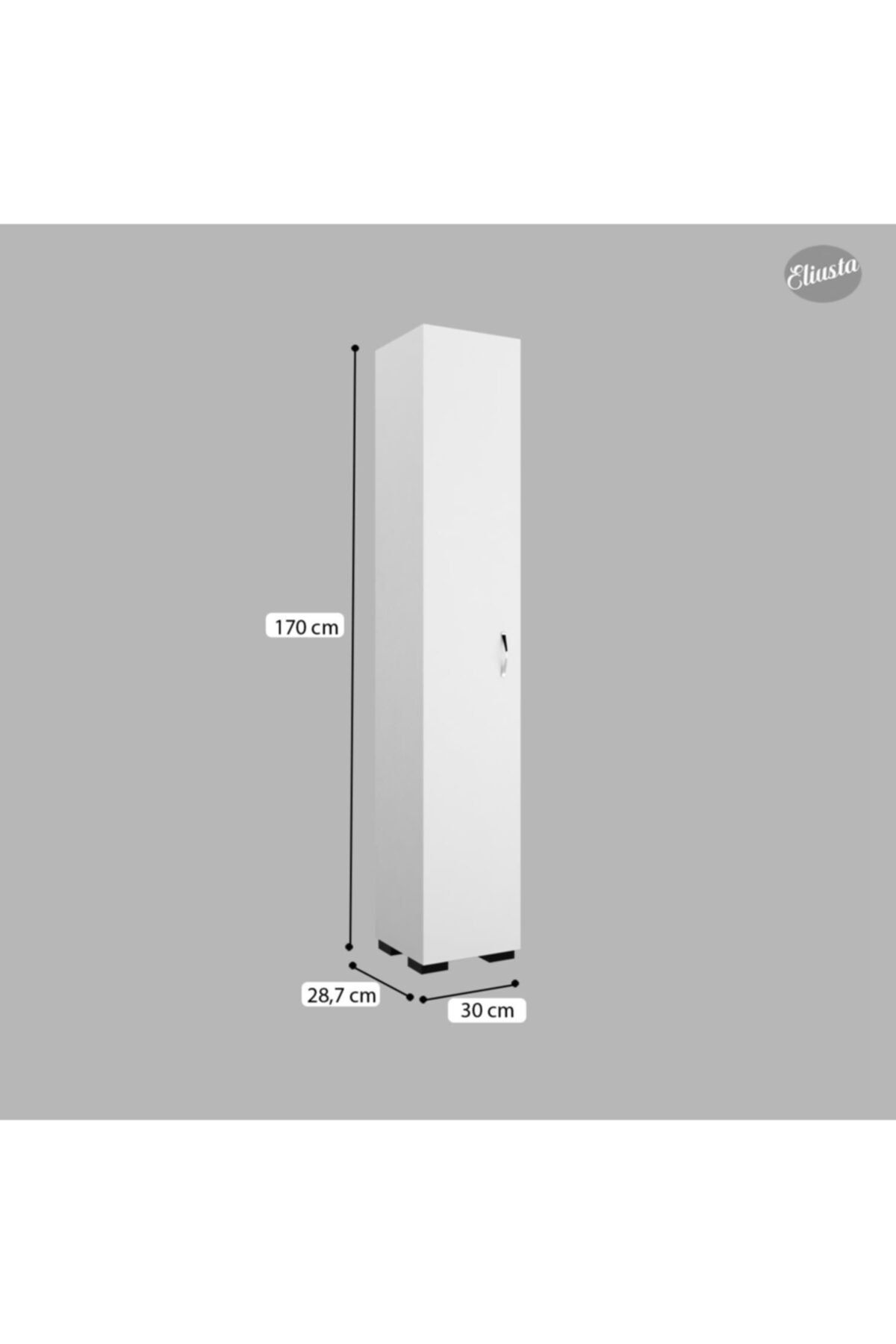 Çok amaçlı banyo dolabı 30 cm genişlik, 170 cm yükseklik ve 28,7 cm derinliği ve dikey yönde kullanımı sayesinde alandan tasarruf sunar. Tek kapaktan ve 5 bölmeden oluşan banyo dolabı ergonomik kullanıma uygun şekilde tasarlanır.; Kapaklı banyo dolabı geniş rafı sayesinde yalnızca banyoda değil salonda, mutfakta ya da benzeri alanlarda kullanmak mümkündür. Havlular, yemek takımları, fincan takımları ve kitaplara kadar çok sayıda eşyayı depolayabilecek kapasiteye sahiptir.; 5 raflı banyo dolabı kanserojen madde içermeyen ve antibakteriyel özellik gösteren malzemeler kullanılarak üretilir. Bunun yanı sıra yonga levha kenar bant kullanıldığı için dayanıklıdır.; Suntalam banyo dolabı 10 cm ayakları ile yerden yüksek olup zeminin temizliğini de kolay hale getirir. ; Dolap demonte olarak gönderilir ve kolay kullanım kılavuzu sayesinde kısa süre içerisinde kullanıma hazır hale gelir.; Beyaz olduğu için toz ve kirlenmesi durumunda nemli bir bez yardımıyla kısa süre içerisinde temizlemek mümkündür. Kimyasal içerikli temizlik malzemelerinin kullanılmaması halinde çok uzun ömürlü bir saklama alanı olur.;
