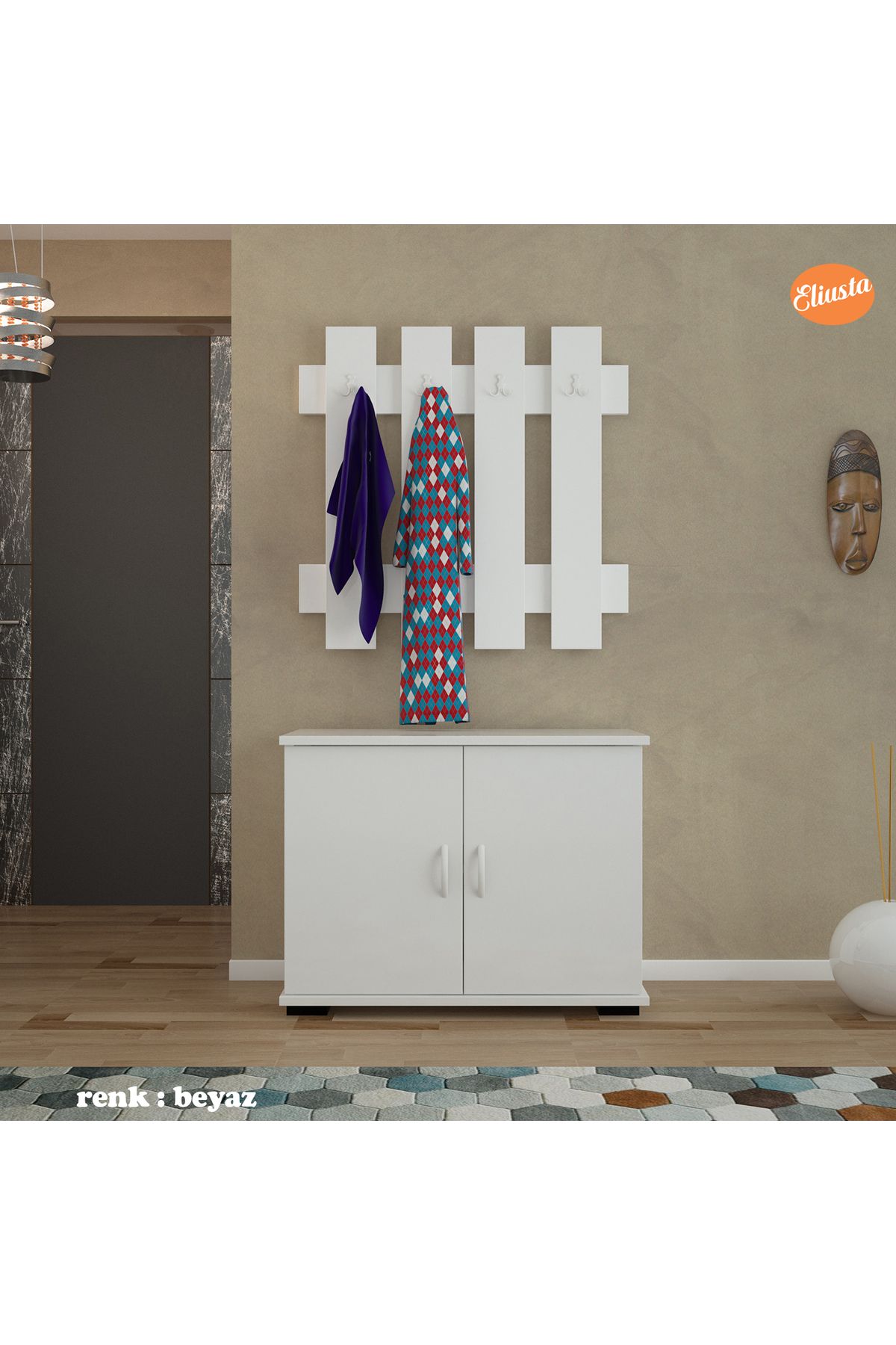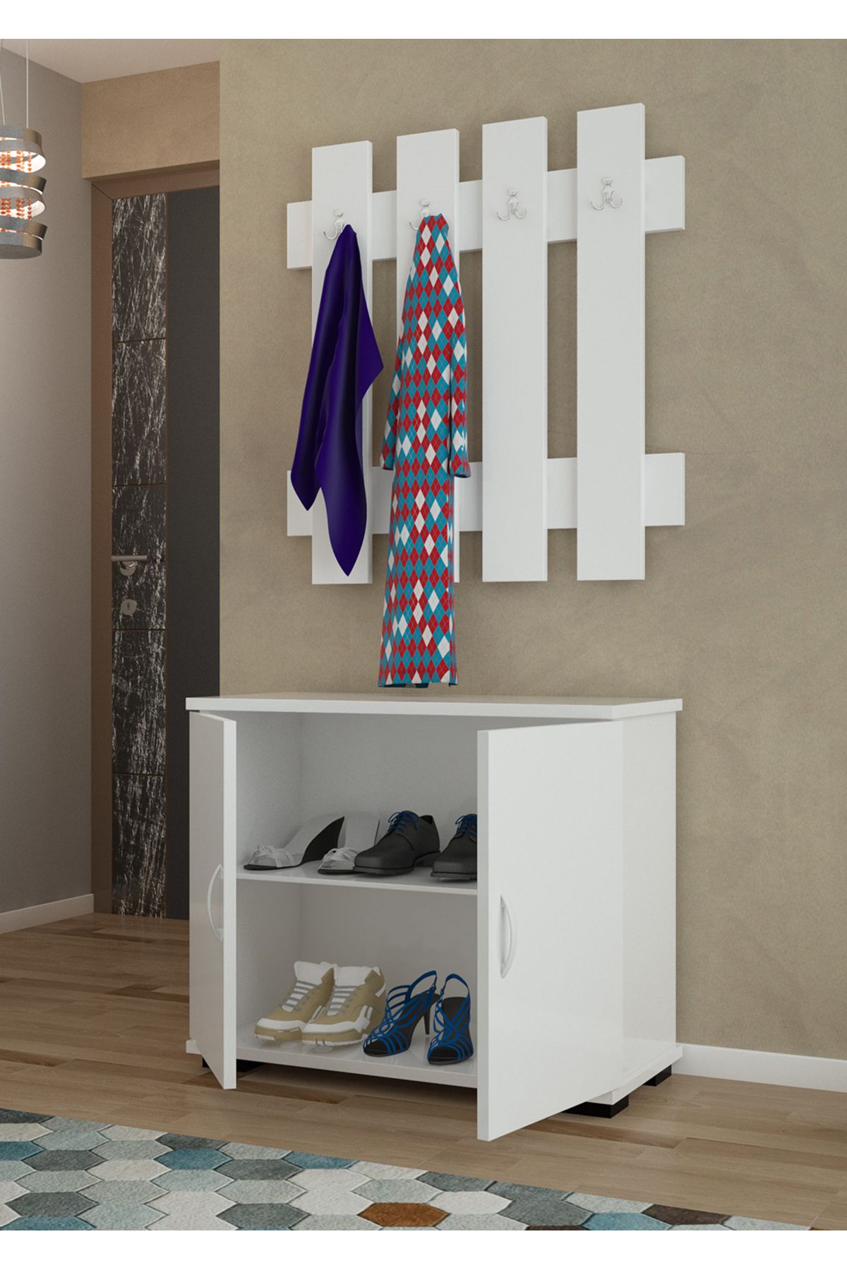 Dolap, iki kapak, 2 bölmeden oluşur. Geniş raf sayesinde 6 çift ayakkabı alır. Ergonomik kullanıma uygun ölçülerde tasarım. 8 Adet askılığı sayesinde ceket, mont vs. ortalıkta görünmesini istemediğiniz her şeyi tek bir yerde toplayabilirsiniz. Ürün resimlerindeki aksesuarlar teşhir amaçlı olup, fiyata dahil değildir.