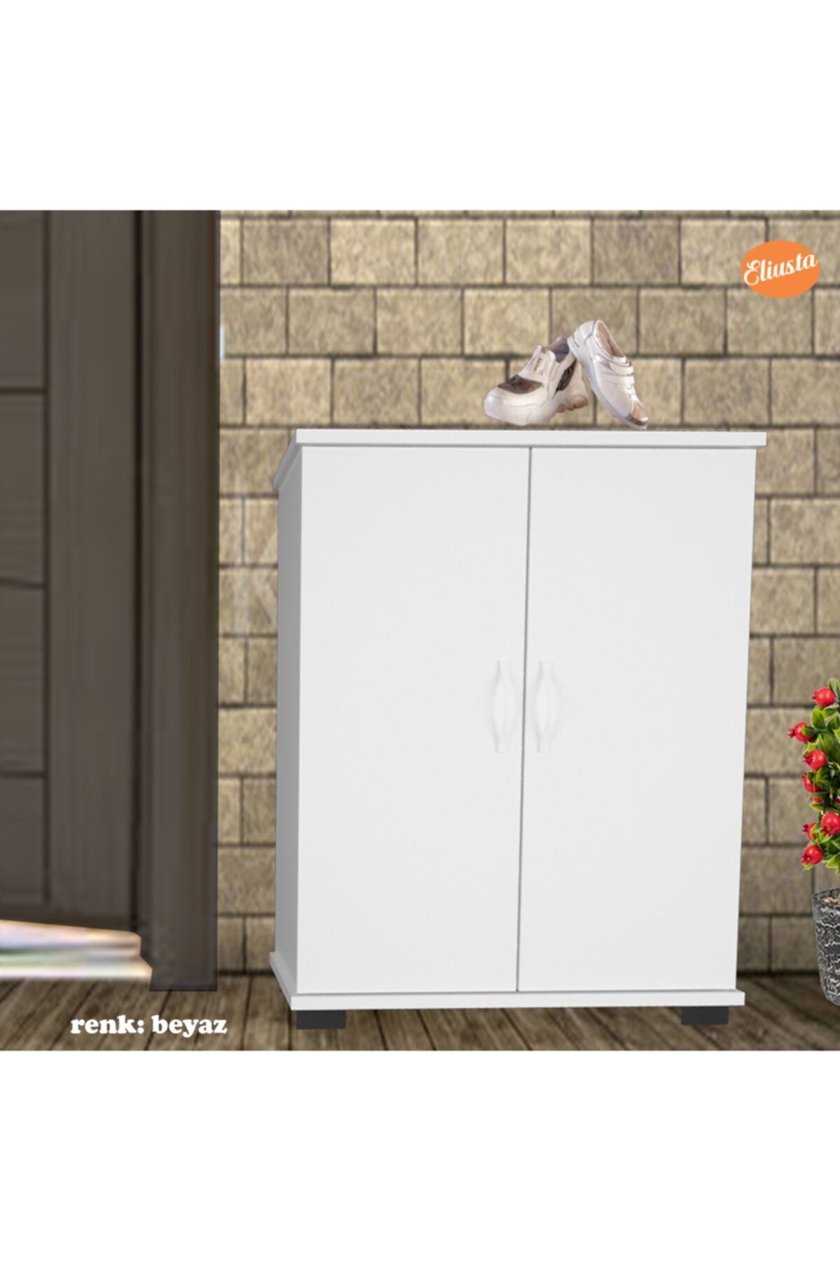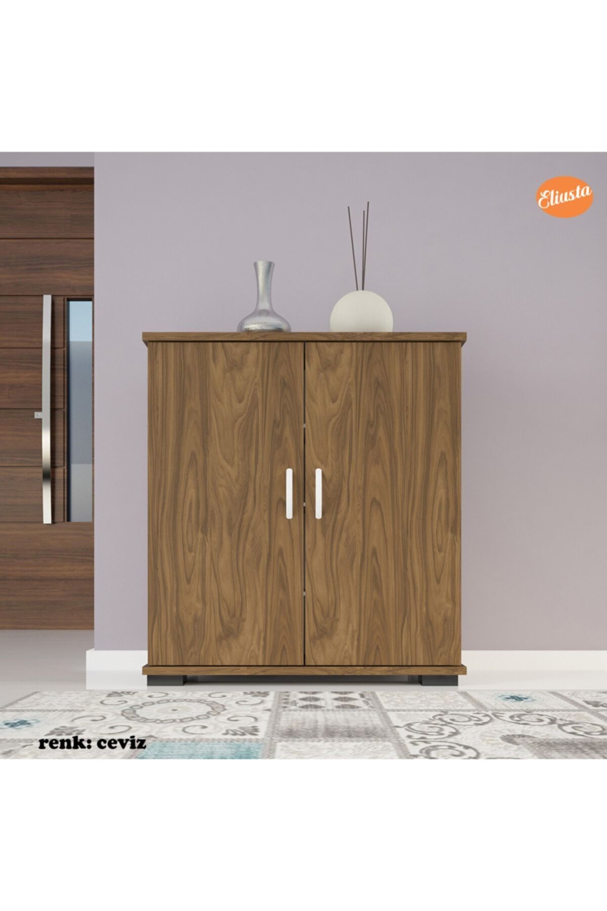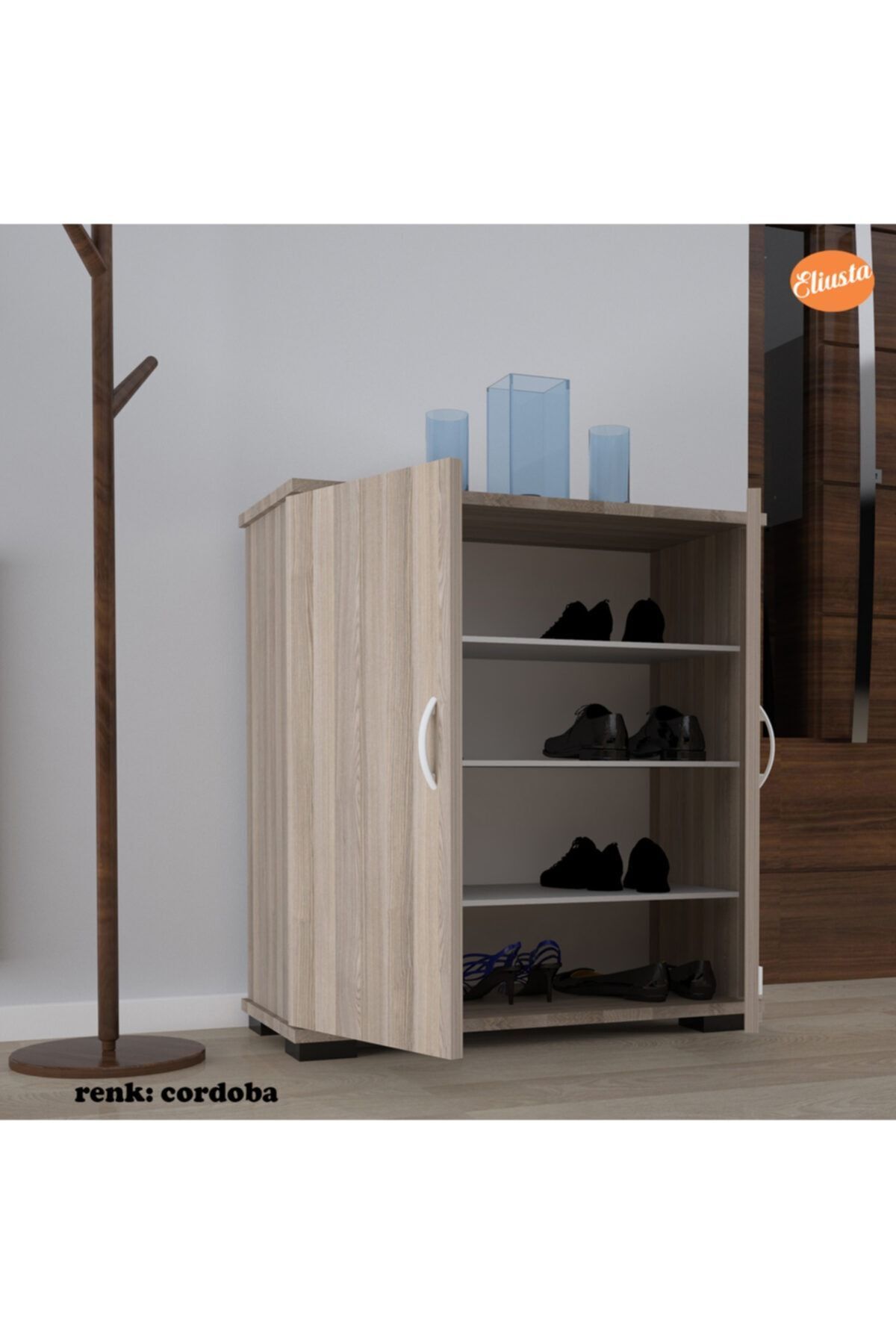 Dikkat çeken modelin ölçüleri; 70 cm genişlik, 76,6 cm yükseklik ve 32 cm derinlik şeklindedir.; 2 kapak ve 4 bölmeden oluşan tasarımı sayesinde ergonomik kullanıma uygundur.; Geniş rafları sayesinde 12 çift ayakkabı alabilen kapasiteye sahiptir.; Çok amaçlı kullanıma hitap eden tasarımı sayesinde ayakkabılığın yanı sıra kiler, banyo, mutfak, ofis, balkon ve çeşitli odalarda değerlendirebilirsiniz.; Dolap yapımında kullanılan malzeme 1. kalite ve 18 mm melamin yüzeyli yonga levhadır.; Kulp, ayak ve menteşeleri uzun yıllar sorunsuz şekilde kullanılan 1. sınıf malzemeden üretilir.; Aynı zamanda bu malzemeler TSE onaylıdır.; Yonga levha kenar bant PVC 0,40 ve 1 mm kullanılır.; Demonte olan modeli kolay şekilde monte ederek kullanıma hazır hale getirebilirsiniz.; Ağırlık taşıma kapasitesi bakımından yüksek performans gösteren model, kapalı tasarımıyla da eşyaları dış etkenlerden muhafaza eder.; Uygun boyutları sayesinde yer kaplamasının önüne geçerek alanı verimli kullanılır.; Ayaklı yapısı sayesinde zemine temas etmeyen tasarım, kayma yapmayan yapısıyla düşme tehlikesinin önüne geçer.; Zemin yüzeylerinin çizilmesini ve hasar almasını engelleyen ayak uçları bulunur.; Suya dayanıklı ayaklar pas ve küf oluşumunu engeller.; Kolay temizleme imkanı sunan model, nemli bezle silinmeye uygundur.; Toz ve leke faktörlerinden arınarak hijyenik kullanım sağlar.; Rengi kahverengi olup pürüzsüz dokuya sahiptir.;