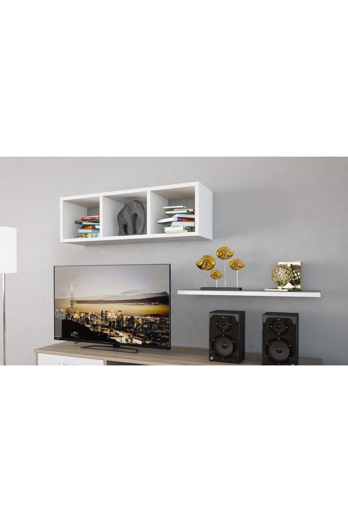 Suntalam malzemesi sayesinde dayanıklı ve uzun ömürlü kullanım sunar; Üç gözlü tasarımı ile kitaplarınızı, DVD'lerinizi ve diğer eşyalarınızı düzenli bir şekilde sergilemenize olanak tanır; Duvara monte edilebilir yapısı, yerden tasarruf etmenizi sağlar ve mekanınızda şık bir görünüm oluşturur; Kolay temizlenebilir yüzeyi ile pratik kullanım sunar ve zamandan tasarruf etmenizi sağlar;