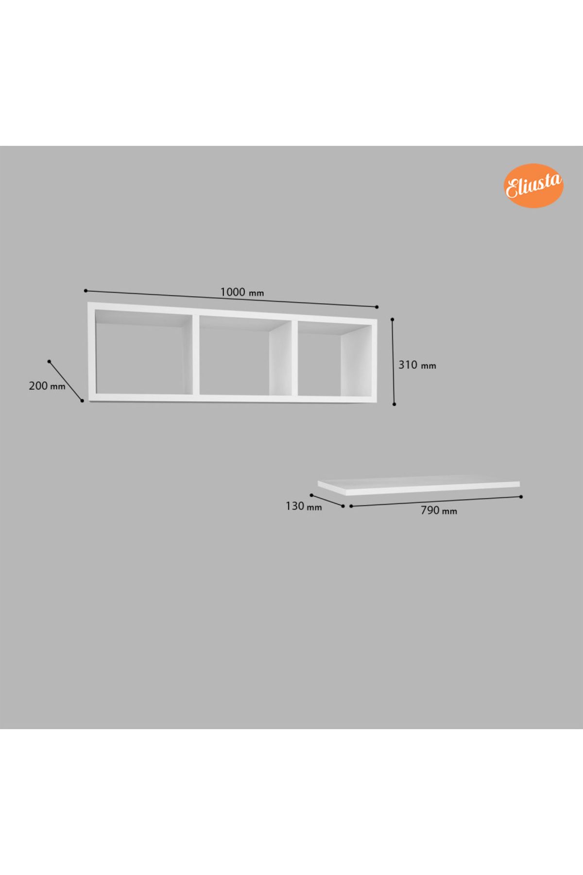 Suntalam malzemesi sayesinde dayanıklı ve uzun ömürlü kullanım sunar; Üç gözlü tasarımı ile kitaplarınızı, DVD'lerinizi ve diğer eşyalarınızı düzenli bir şekilde sergilemenize olanak tanır; Duvara monte edilebilir yapısı, yerden tasarruf etmenizi sağlar ve mekanınızda şık bir görünüm oluşturur; Kolay temizlenebilir yüzeyi ile pratik kullanım imkanı sunar ve zamandan tasarruf etmenizi sağlar;