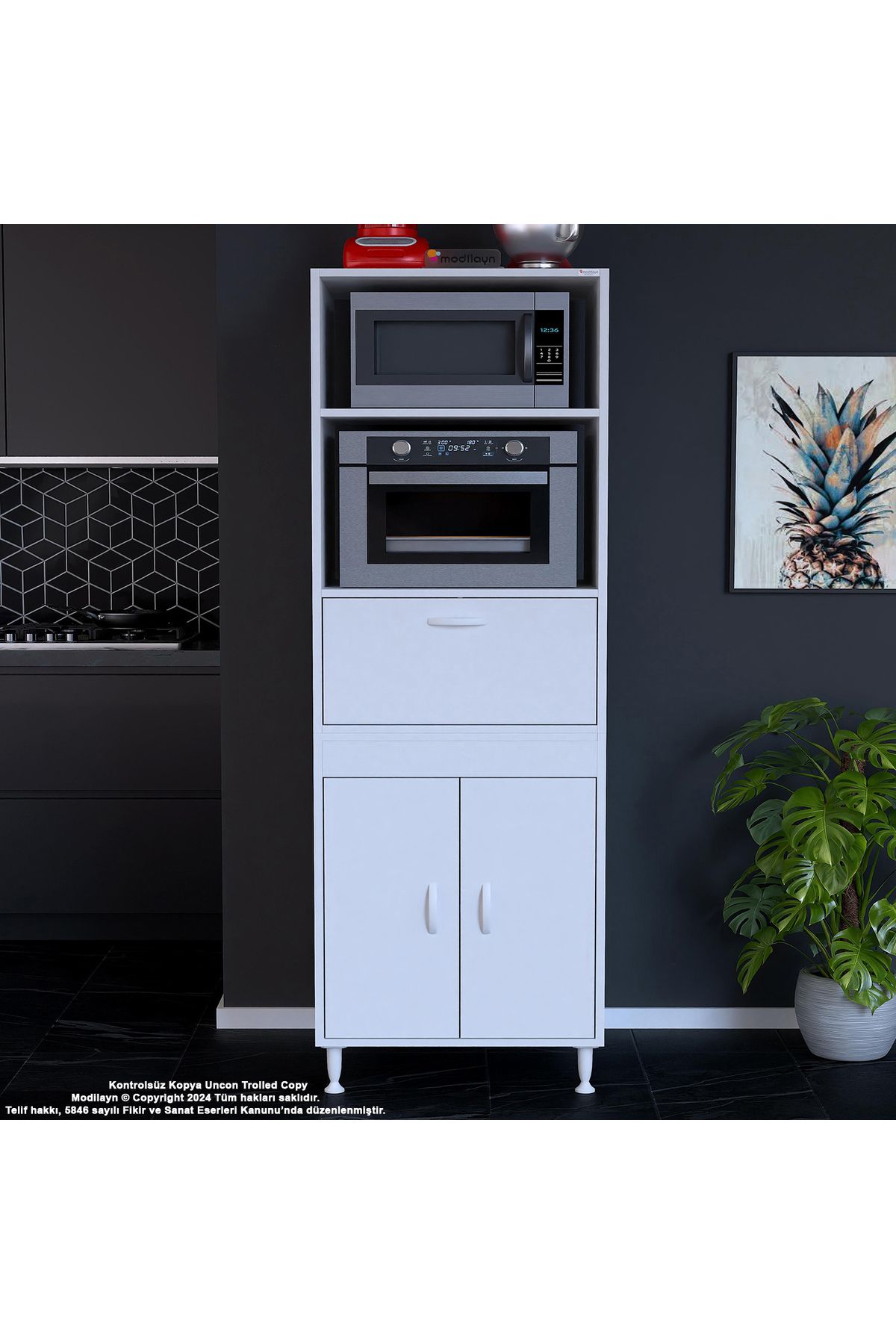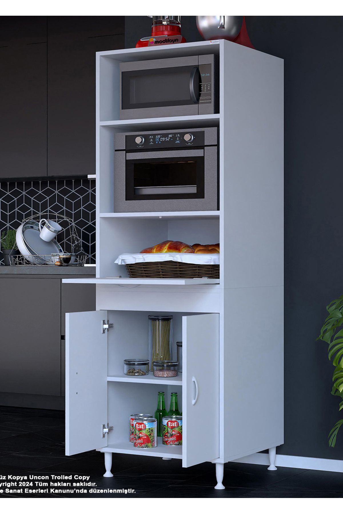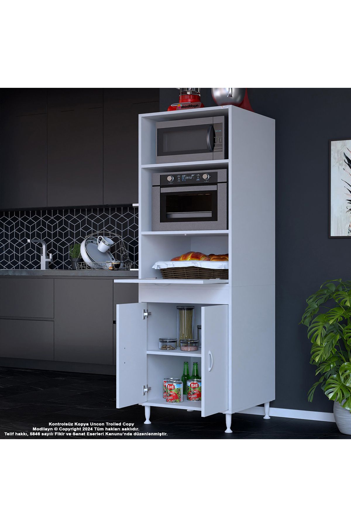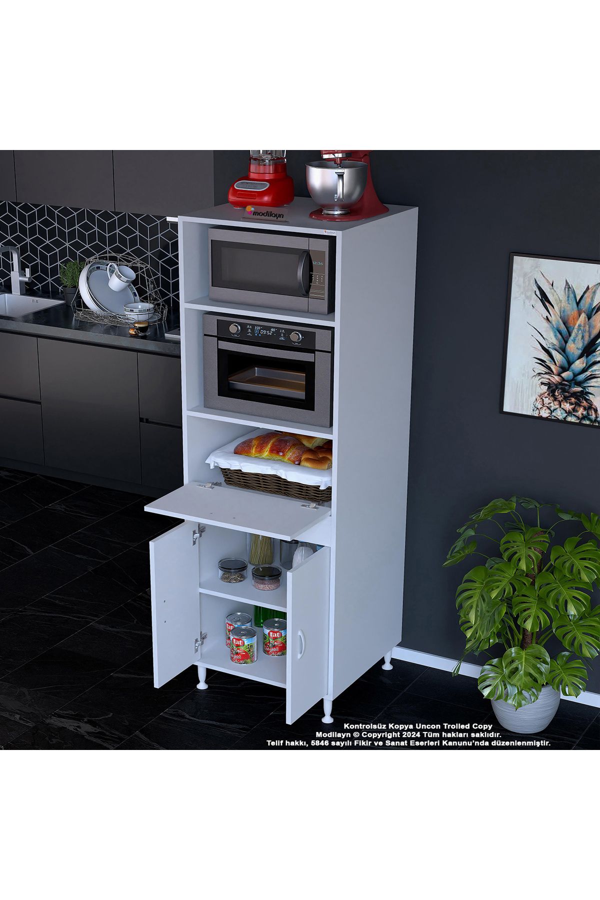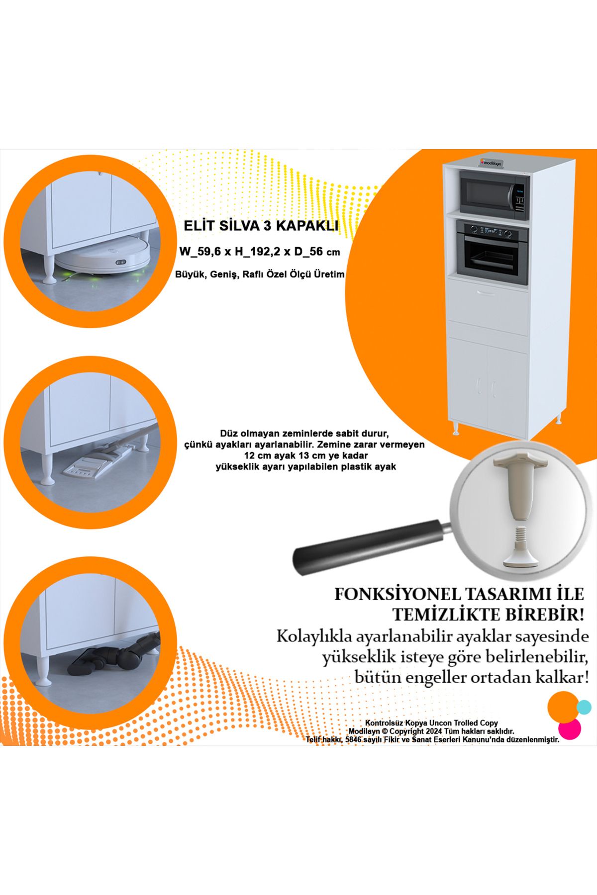2M-9-501-B-15-503- Modilayn ELİT SİLVA 59,6 x 192,2 x 56 cm 3 Kapaklı Ekmeklikli 5 Geniş Yüksek Derin Göz Mini Midi Mikrodalga Fırın Dolabı