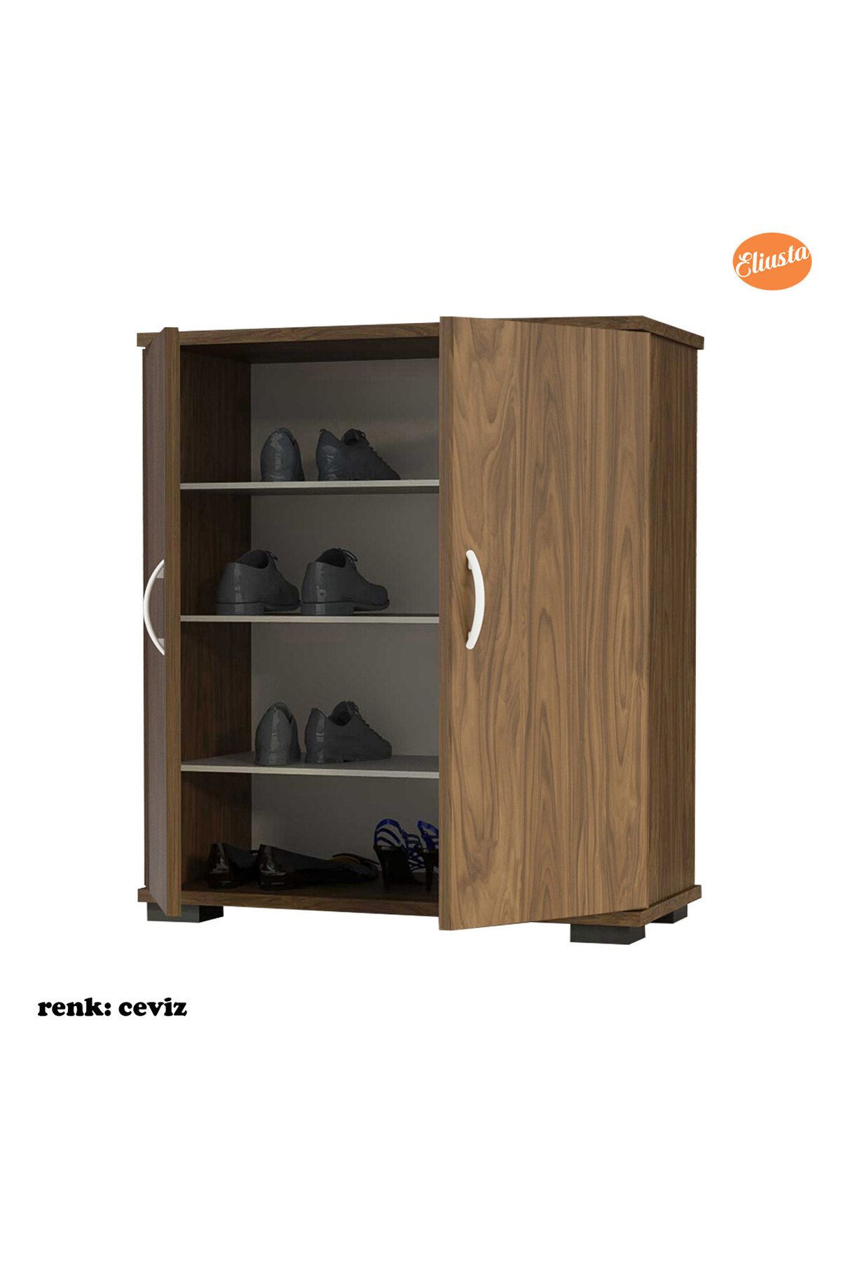 EU-112 Ayakkabılık Çok Amaçlı Dolap Antre Ayakkabılık 4 raflı Ayakkabı Dolabı - CEVİZ
