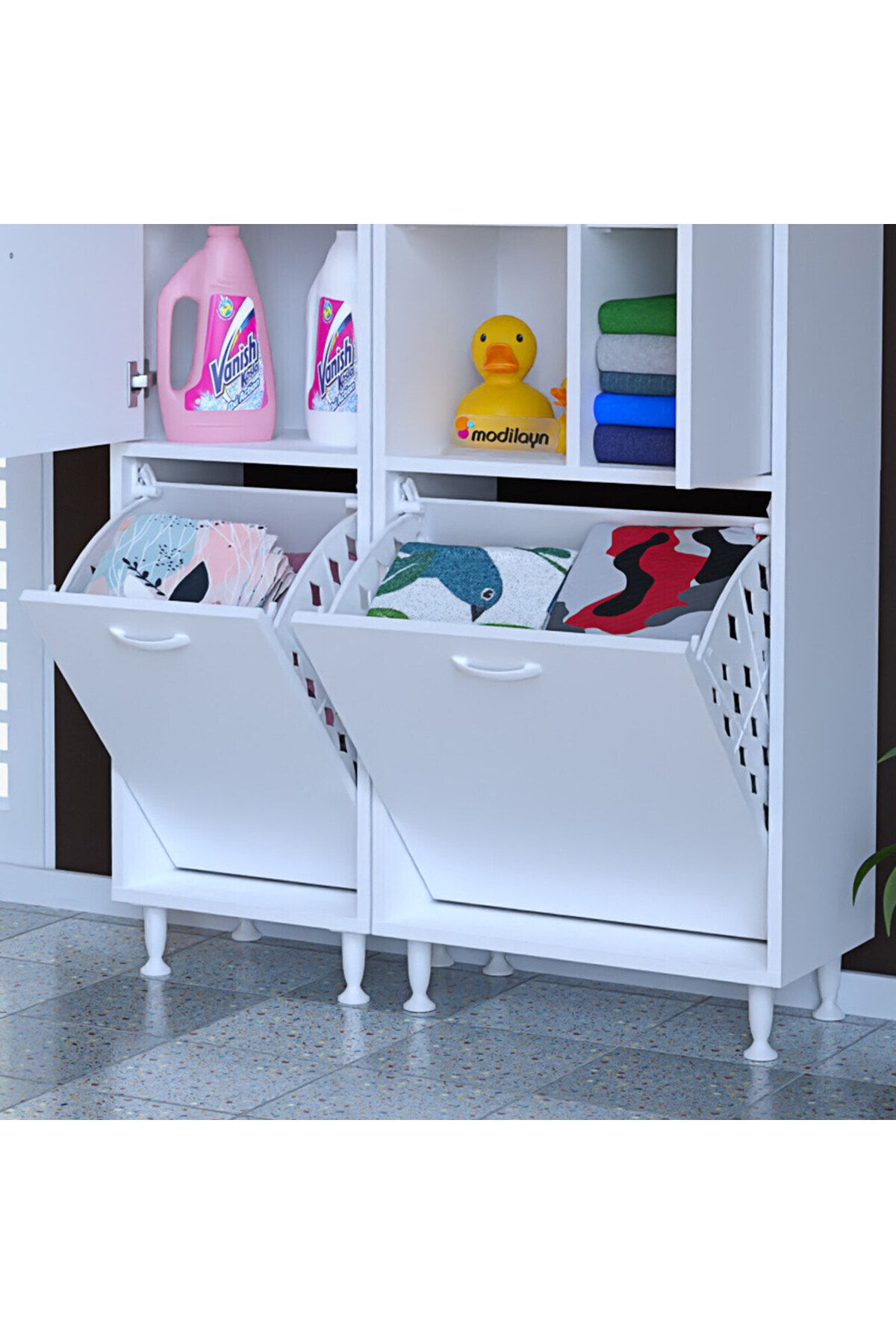FORBEST İNCİ Çok Amaçlı Dolap Çamaşır Sepetli Dolap 3 Kapaklı Banyo Dolabı Mutfak Dolabı