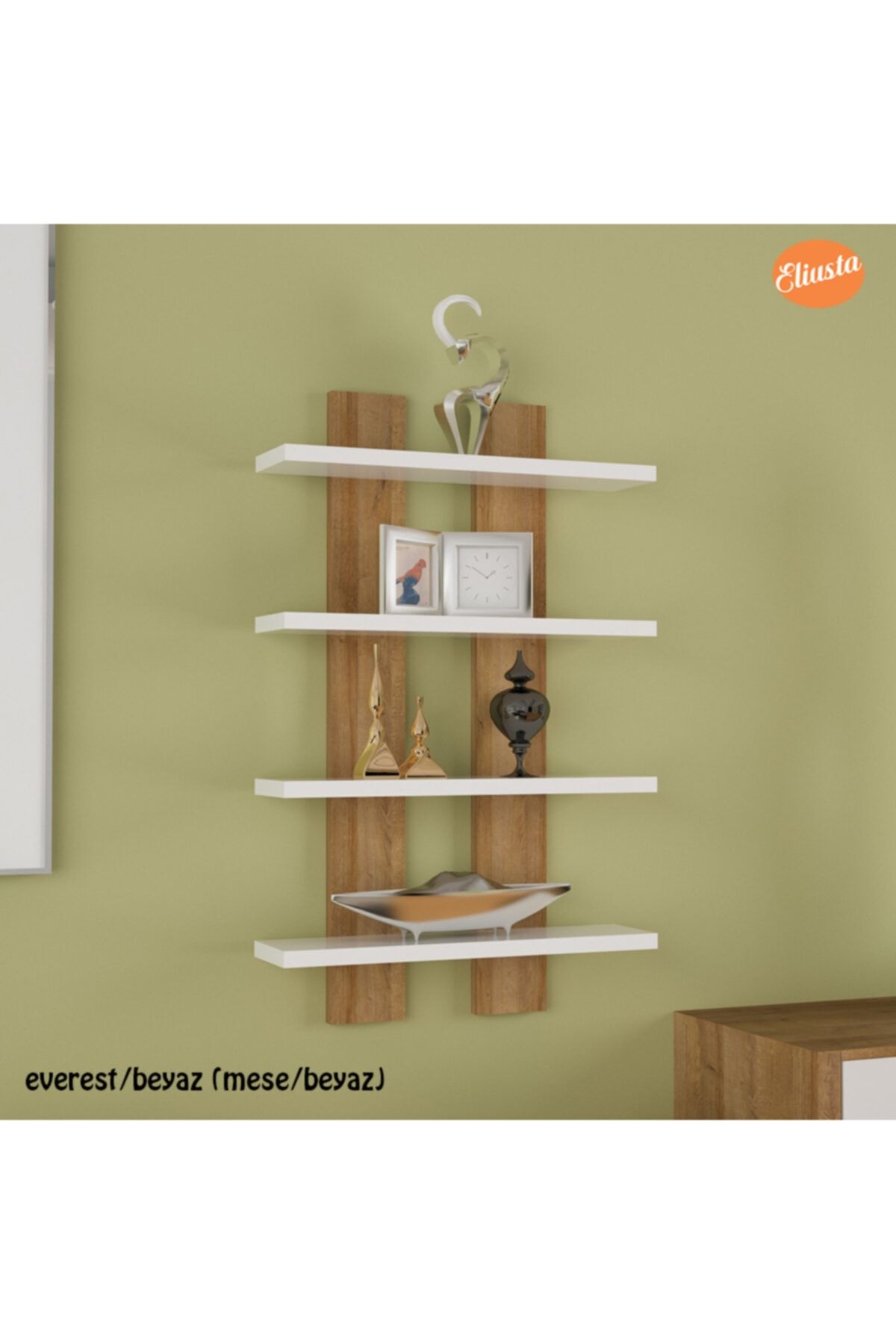 Kahverengi Dört Raflı Duvar Ünitesi Rafı