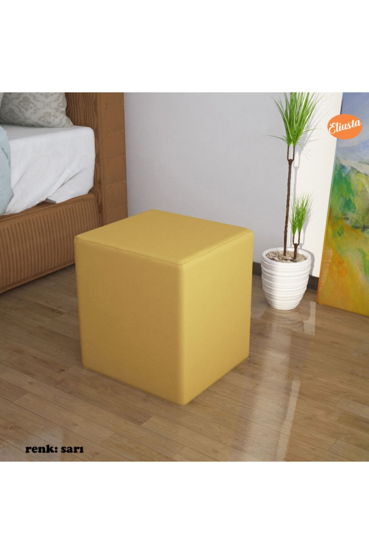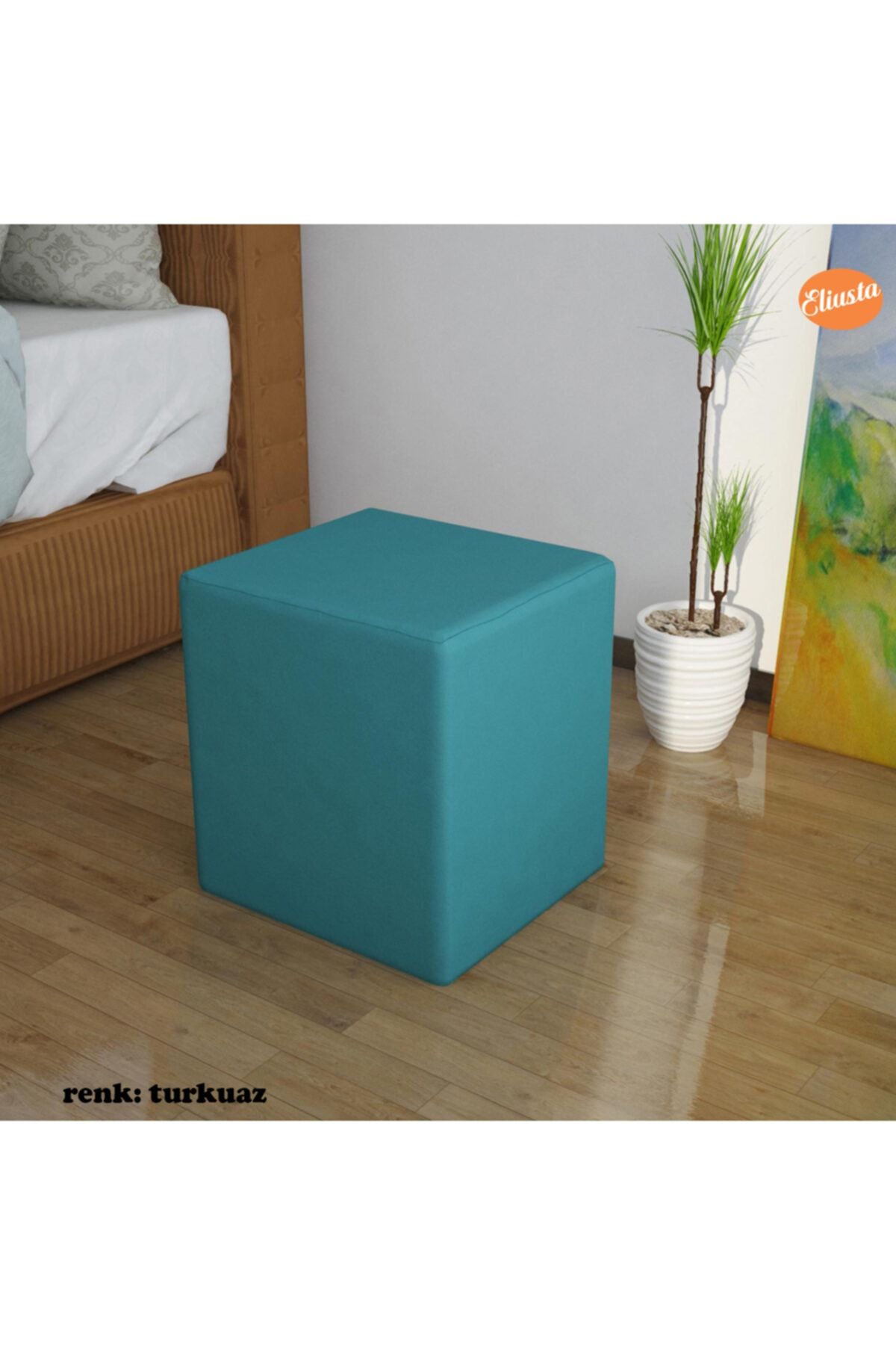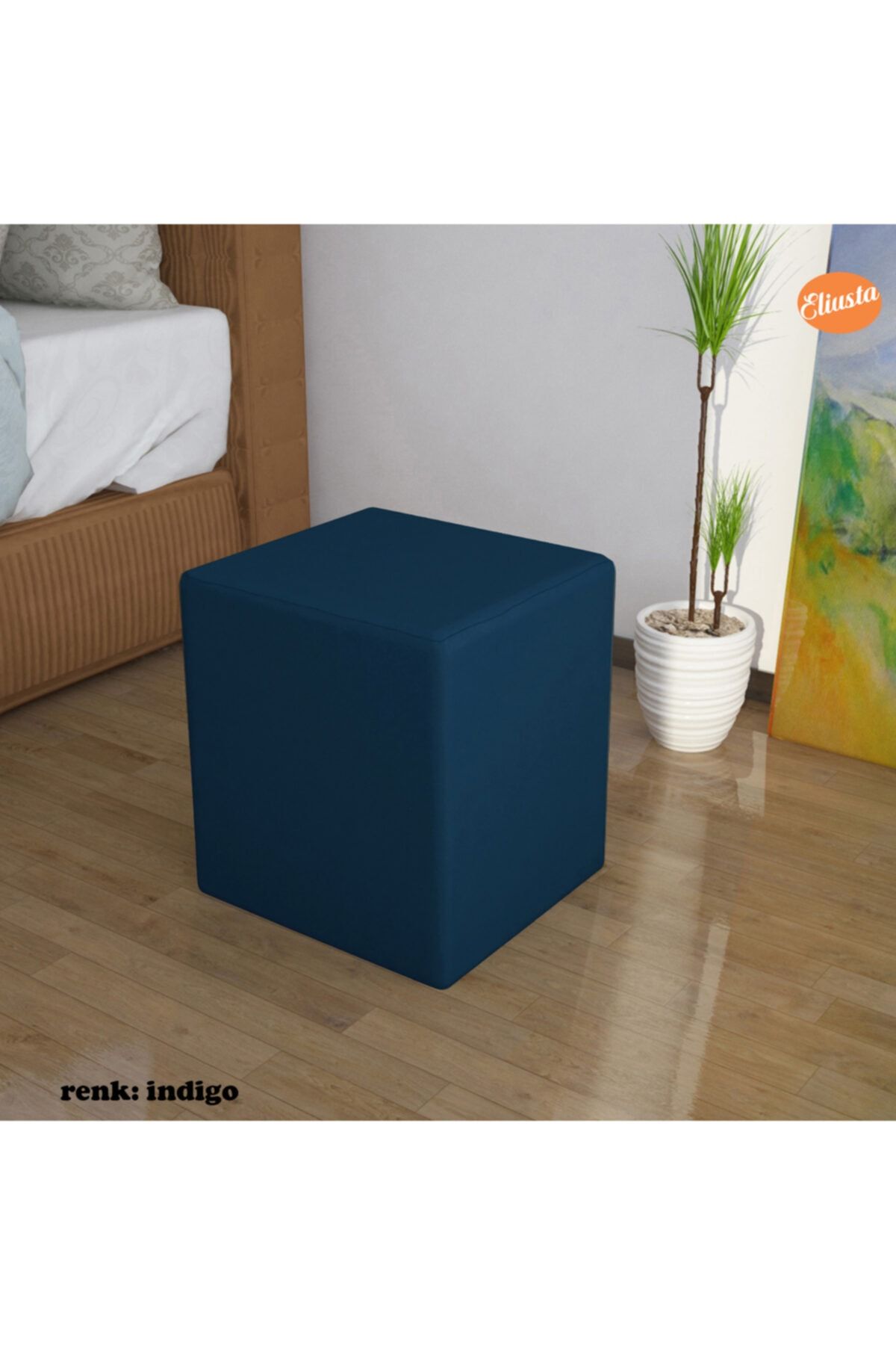 Kare Puf Ahşap Iskeletli Kadifemsi Kumaşlı Tabure