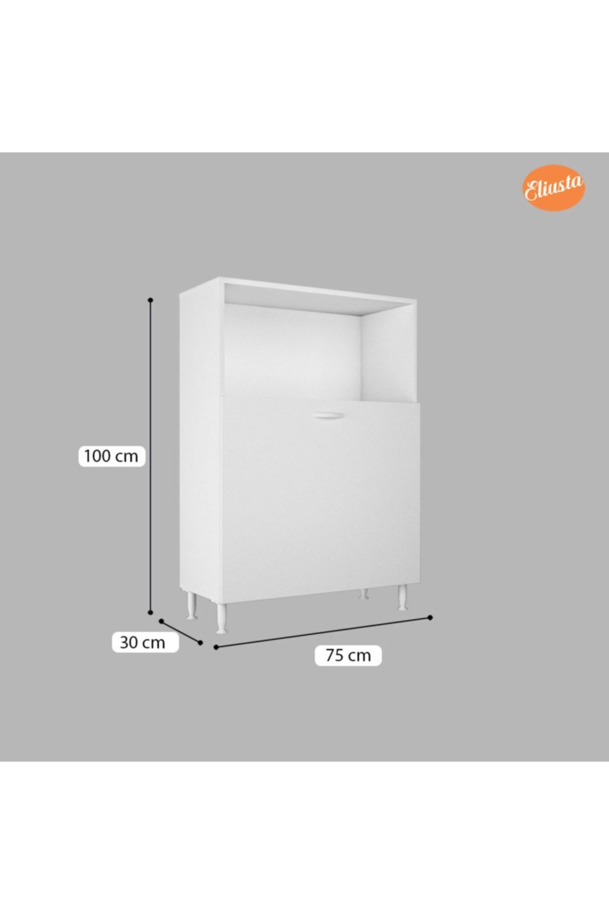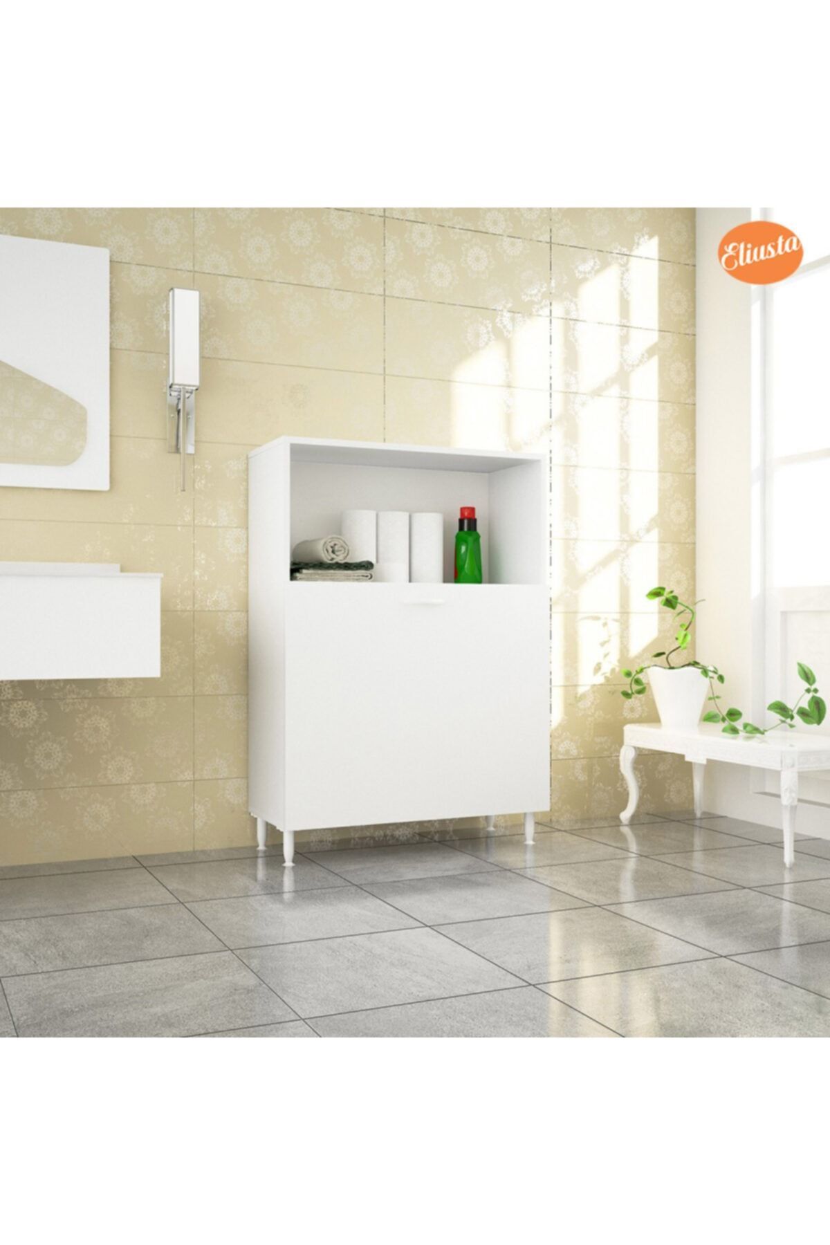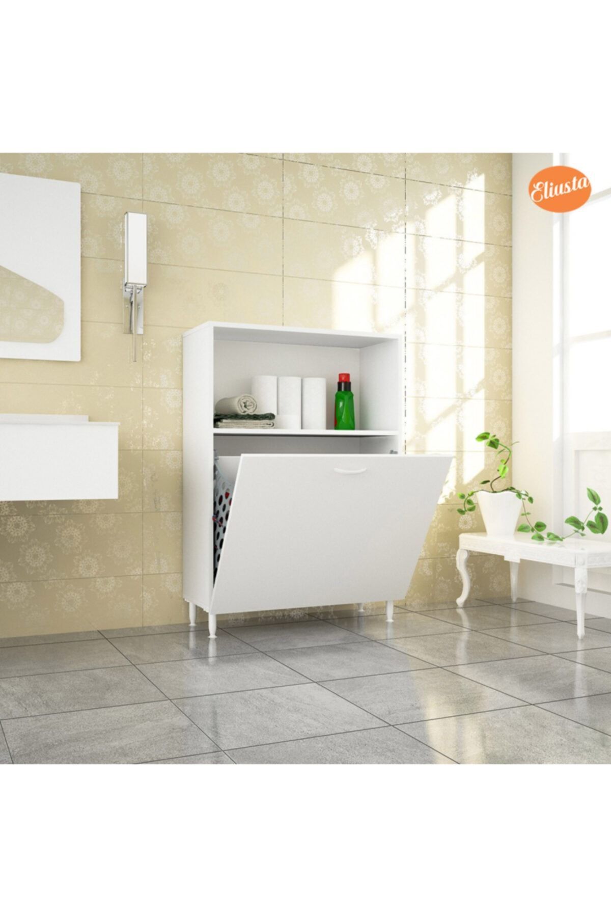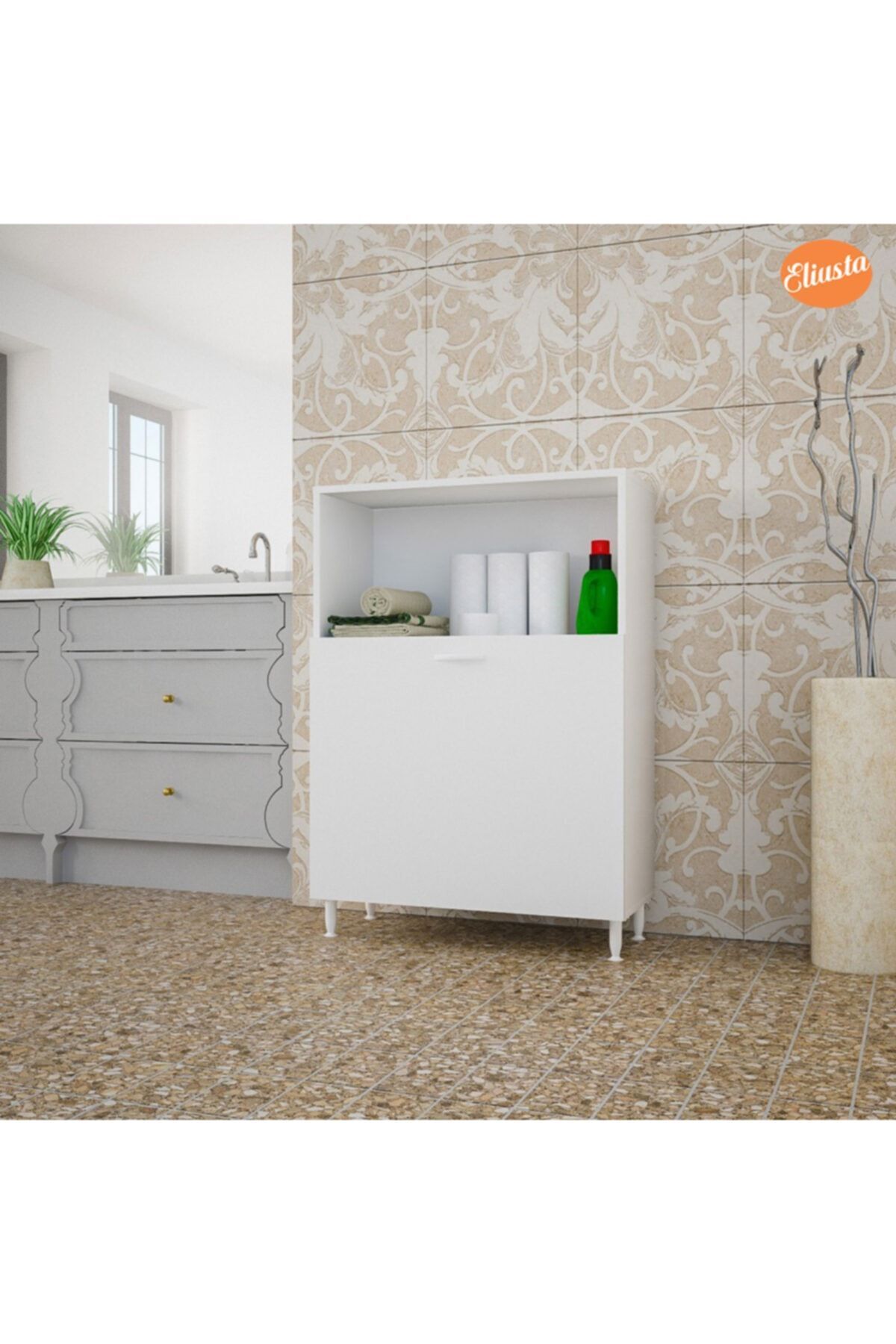 100 CM yükseklik, 30 CM derinlik, 75 CM genişlik ölçüleri ile tasarlanan ayaklı banyo dolabı banyolarda alt modül olarak kullanılmaya uygunluk gösterir.; Beyaz banyo dolabı 1 adet açık raf ile oldukça şık bir tasarıma sahiptir.; Alt kısmı ise; kirli sepeti olarak kullanılabilir.; Sepetli banyo dolabı kirli kıyafetlerinizin toparlanması için özel bir alan bulundurur.; Böylelikle kıyafetlerinizin kokmasının önüne geçilebilir ve daha düzenli bir görünüm oluşur.; Açık raflı banyo dolabı geniş raf ölçüsü sayesinde birçok eşyayı düzenli bir şekilde yerleştirmenizi sağlar.; Böylelikle banyonuzu konforlu bir şekilde kullanabilirsiniz.; Suntalam banyo dolabı suya ve neme karşı dayanıklı olduğu için kabarma ve şişme yapmadan kullanımı gerçekleştirilir.; Beyaz renk seçeneği sayesinde hoş bir görüntü ortaya çıkarır.; 2 önde, 2 arkada olmak üzere 4 adet ayaktan tasarlanır.; Ayakları dayanıklı materyalden üretildiği için, ağır eşyaların kolaylıkla taşınmasına olanak tanır.; Kirli sepeti bölümü yavaş açılıp kapanabildiğinden, yumuşak kullanıma uygun bir model olarak beğeni toplar.; Aynı zamanda kirli sepeti bölümünü açıp kapatabilmeniz için 1 adet kulp bulunur.; 1 adet paslanmaz kulptan oluştuğu için sağlıklı bir şekilde kullanabilirsiniz.; Aynı zamanda küflü, nemli ve rutubetli ortamlarda da sorunsuz kullanımı mümkün kılar.; Kenarları PVC kaplamaya sahip olduğu için keskinliği giderilir.; Böylelikle güvenilir bir şekilde kullanım imkanı sunar.;