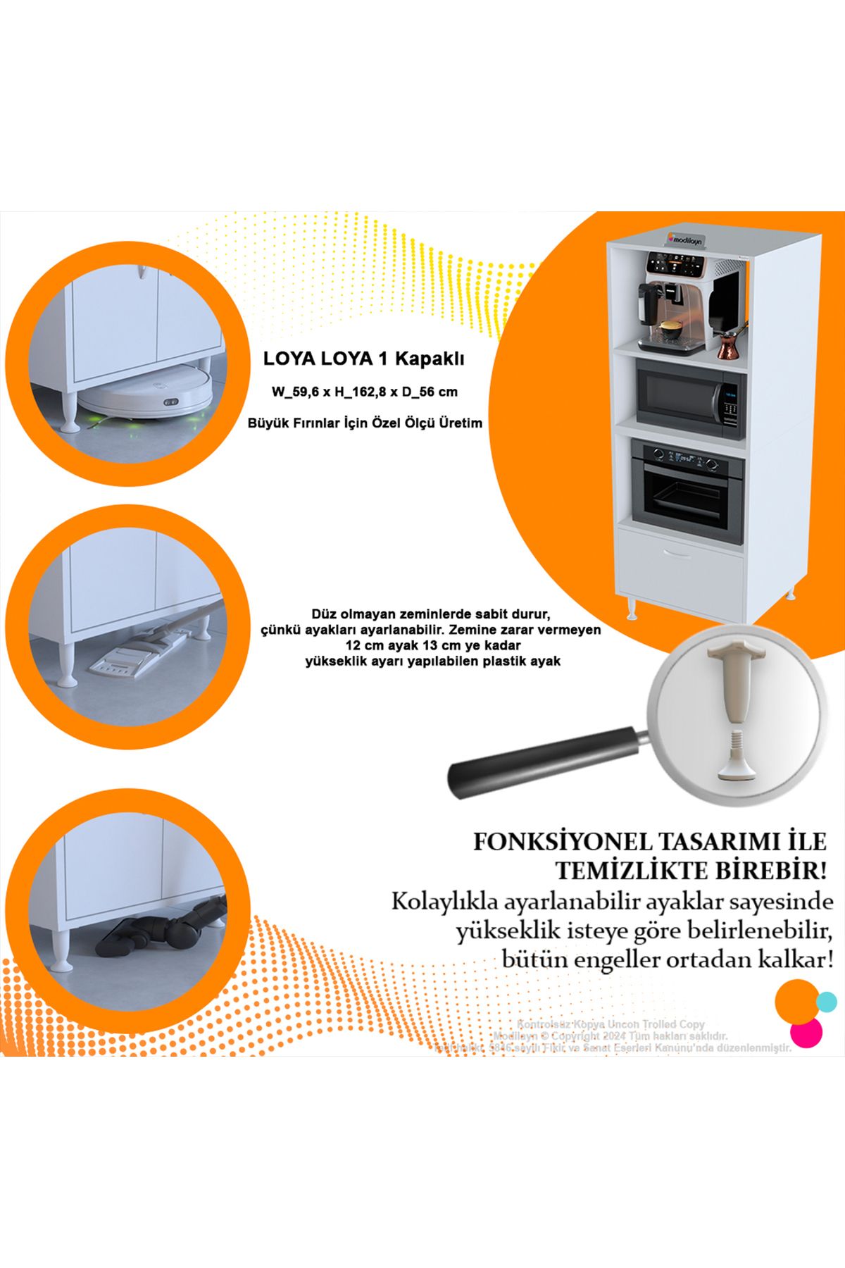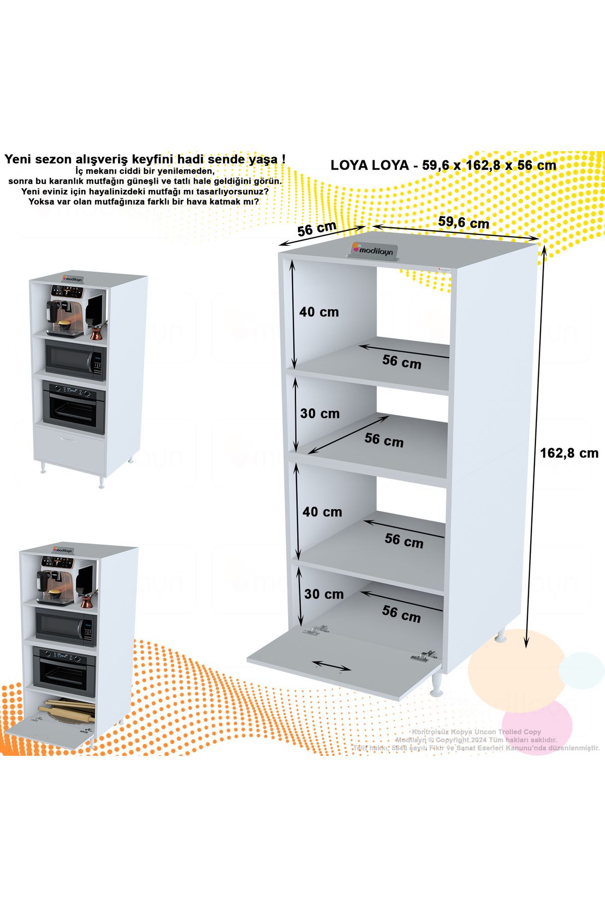 6M-13-502-B-10-502- Modilayn LOYA LOYA 1 Kapaklı 59,6 x 162,8 x 56 cm Özel Ölçü Üretim Büyük Fırınlar İçin 4 Geniş Yüksek Derin Göz Bölmeli Mini Midi Mikrodalga Fırın Dolabı