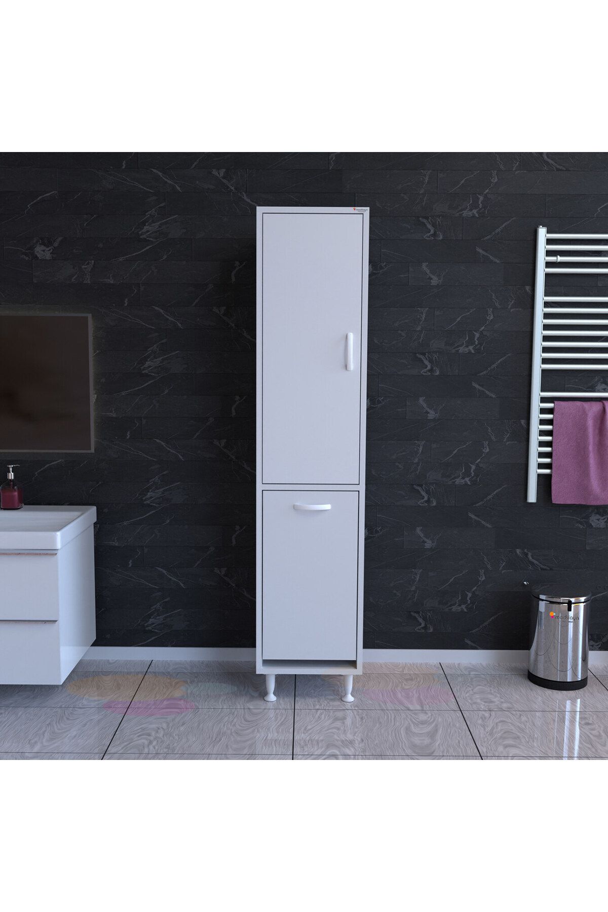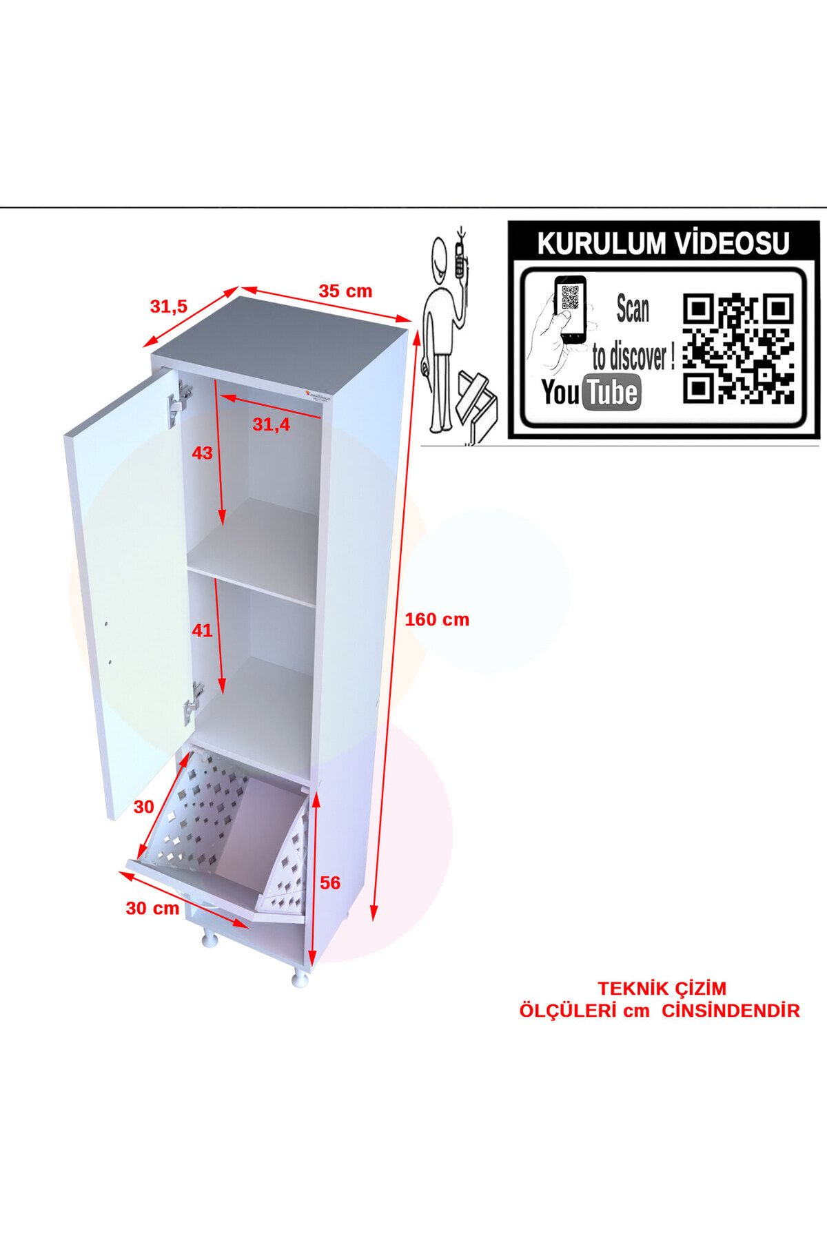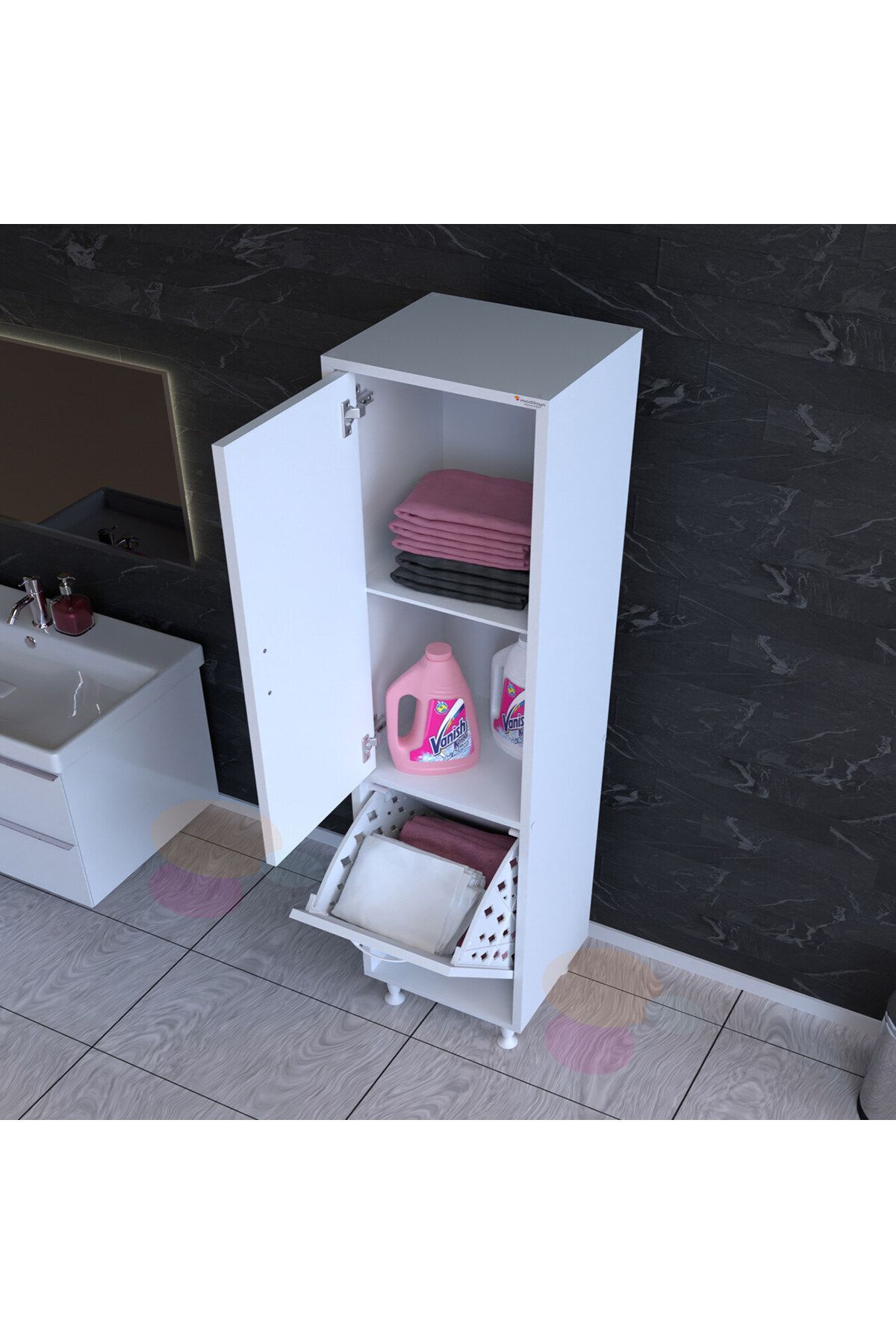 MODİLAYN Alaçatı 35 x 160 cm Çamaşır Sepetli Dolap Banyo Dolabı Temizlik Deterjan Dolabı