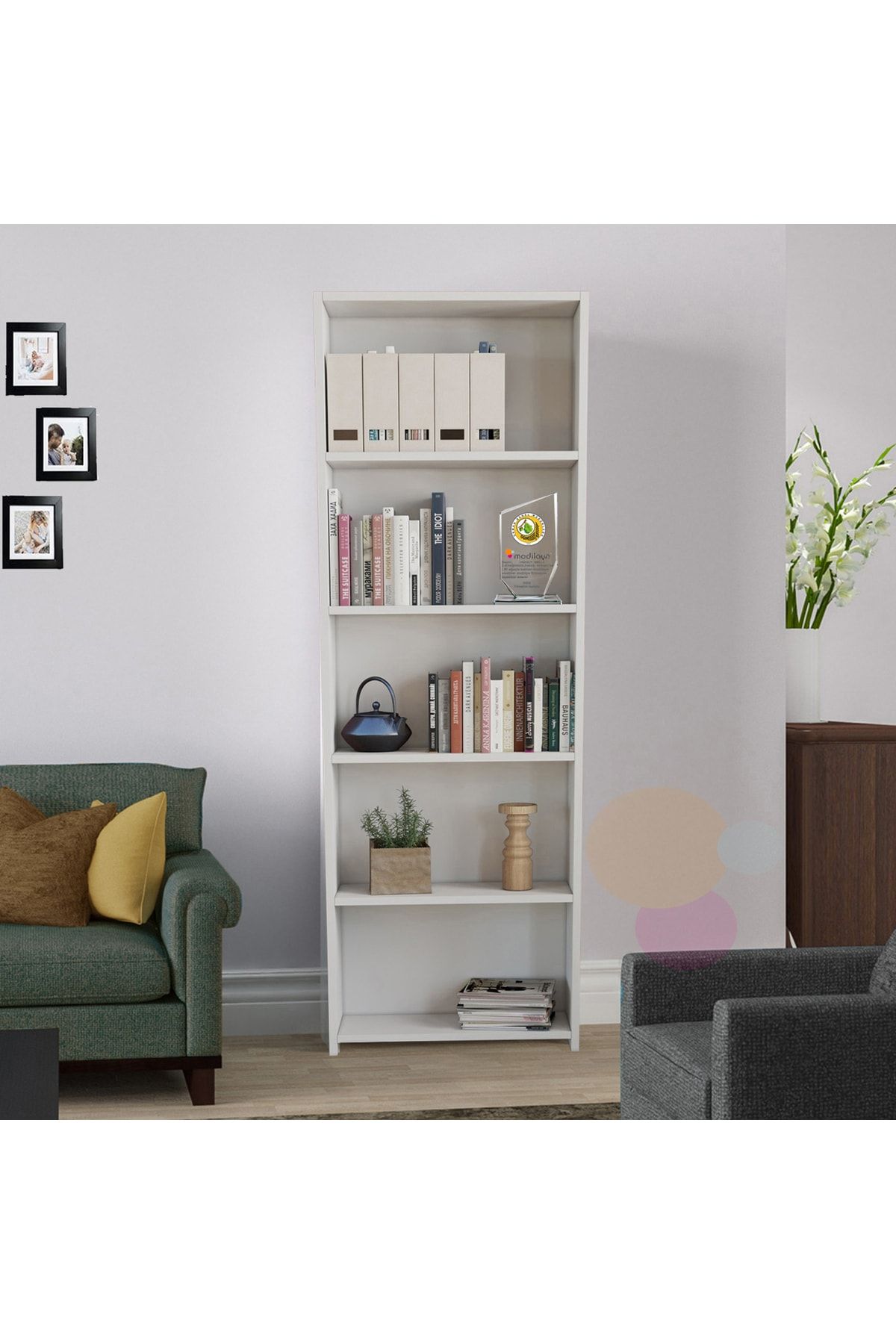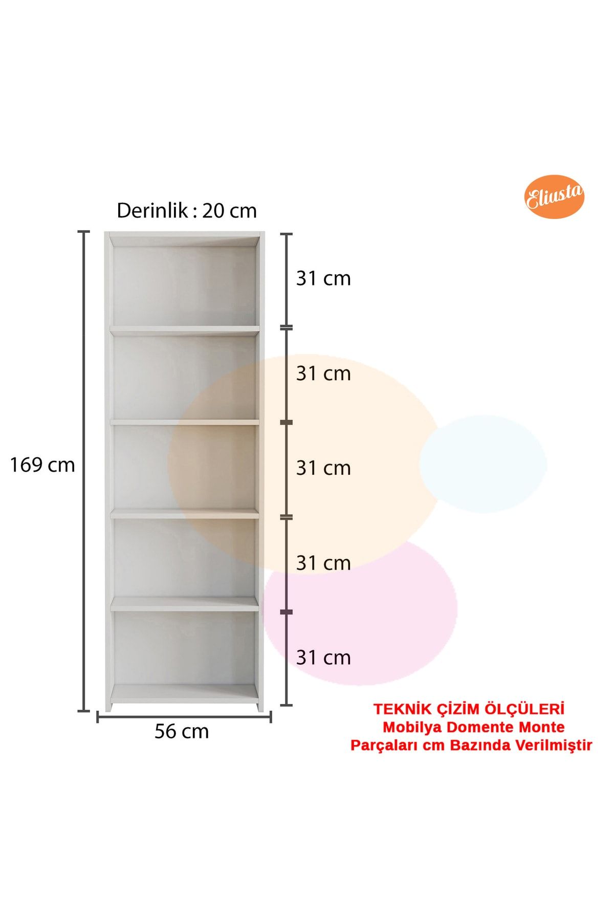 Toplam yüksekliği 169 CM olan çok amaçlı raflı dolap 20 CM derinlik, 55 CM genişlik ölçüleri ile tasarlanır. Aynı zamanda her rafı 31 CM aralıklar ile düzenlenir.; Beyaz çok amaçlı dolap sadelik kazandıran rengi sayesinde birçok dekorasyona uyum sağlar. Böylelikle evinizin birçok alanında kullanabilirsiniz.; 5 raflı arkalıklı kitaplık salonlarda, odalarda kitaplık olarak tercih edilebilir. Aynı zamanda mutfaklarda da organizatör dolap olarak kullanılmaya uygunluk gösterir.; Kapaksız çok amaçlı dolap suntalam malzemeden üretildiği için darbelere karşı dayanıklılık sergiler. Böylelikle uzun süre aynı kalitede kullanımı sürdürülür.; Model, ergonomik kullanıma uygun olan ölçüleri sayesinde birçok alana rahatlıkla yerleştirilebilir.; Kitaplarınızı, biblolarınızı ve daha birçok eşyanızı tek bir alanda toplamanıza yardımcı olur. Kullanım alanları oldukça geniş olduğu için ofis, mutfak, salon gibi birçok alanda kullanımı mümkün kılar.; E1 sertifikalı olduğu için kaliteli ve güvenli kullanım deneyimini destekler. Aynı zamanda Avrupa standartlarına göre üretilir.; Suya dayanıklı yüksek kalite melamin yüzeye sahip olan yonga levhalardan üretildiği için banyo gibi alanlarda konforlu kullanıma olanak tanır. Ayrıca nemli, rutubetli, küflü ortamlarda da kullanılmaya uygun bir tercih haline gelir.; Her rafı 18 MM kalınlığında 1. sınıf yonga levhalardan üretildiğinden ağır eşyaları da kaldırabilen özelliği bulunur.;