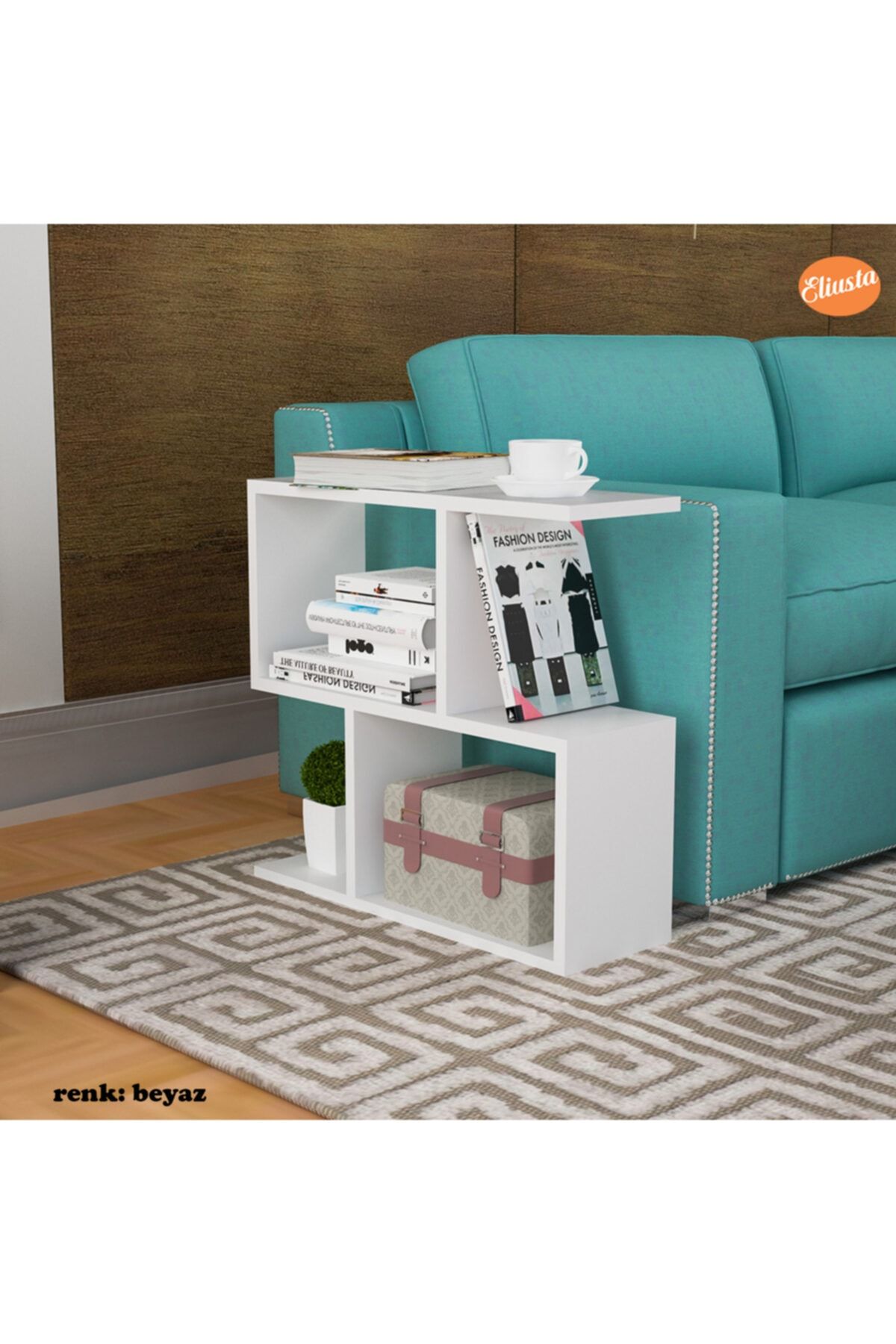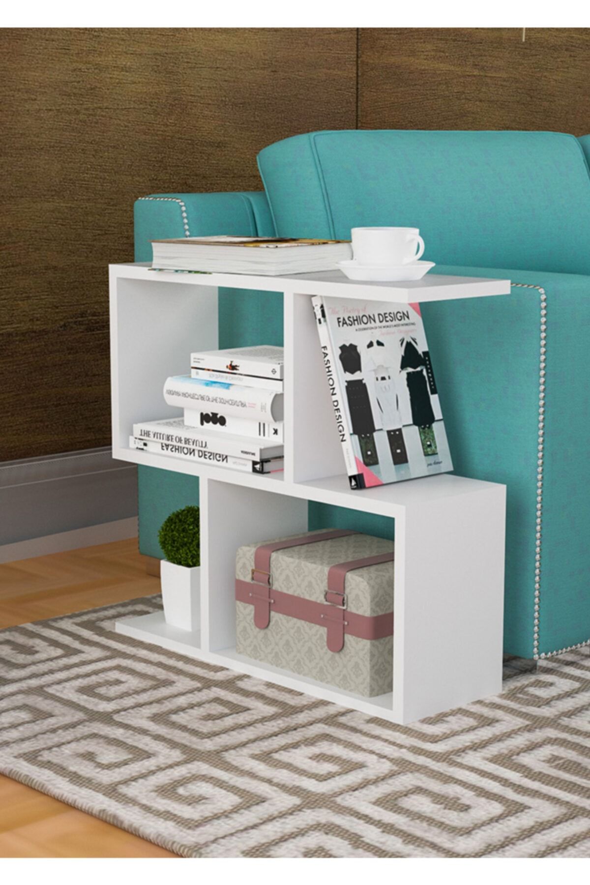 Raflı Yan Sehpa Koltuk Yanı Kitaplıklı Raflı Sehpa