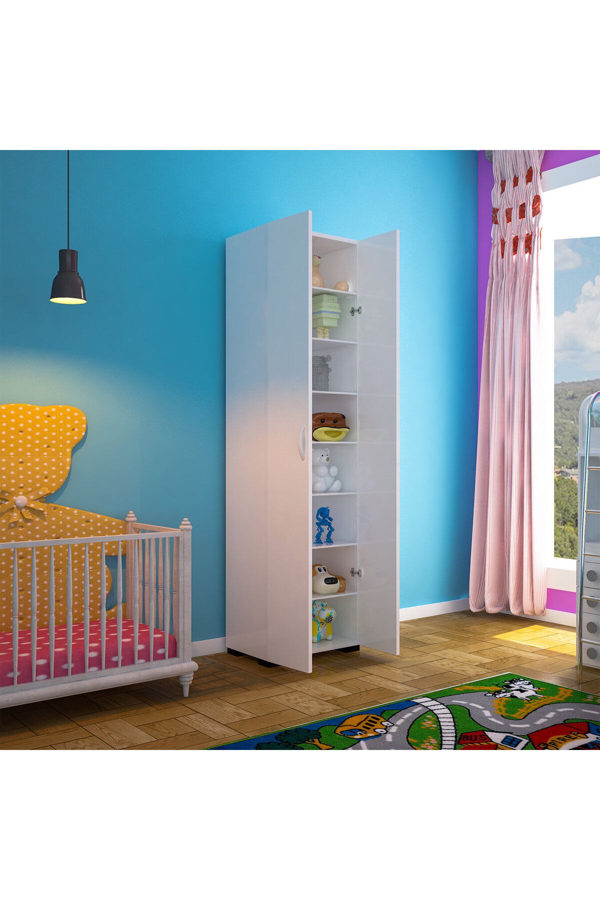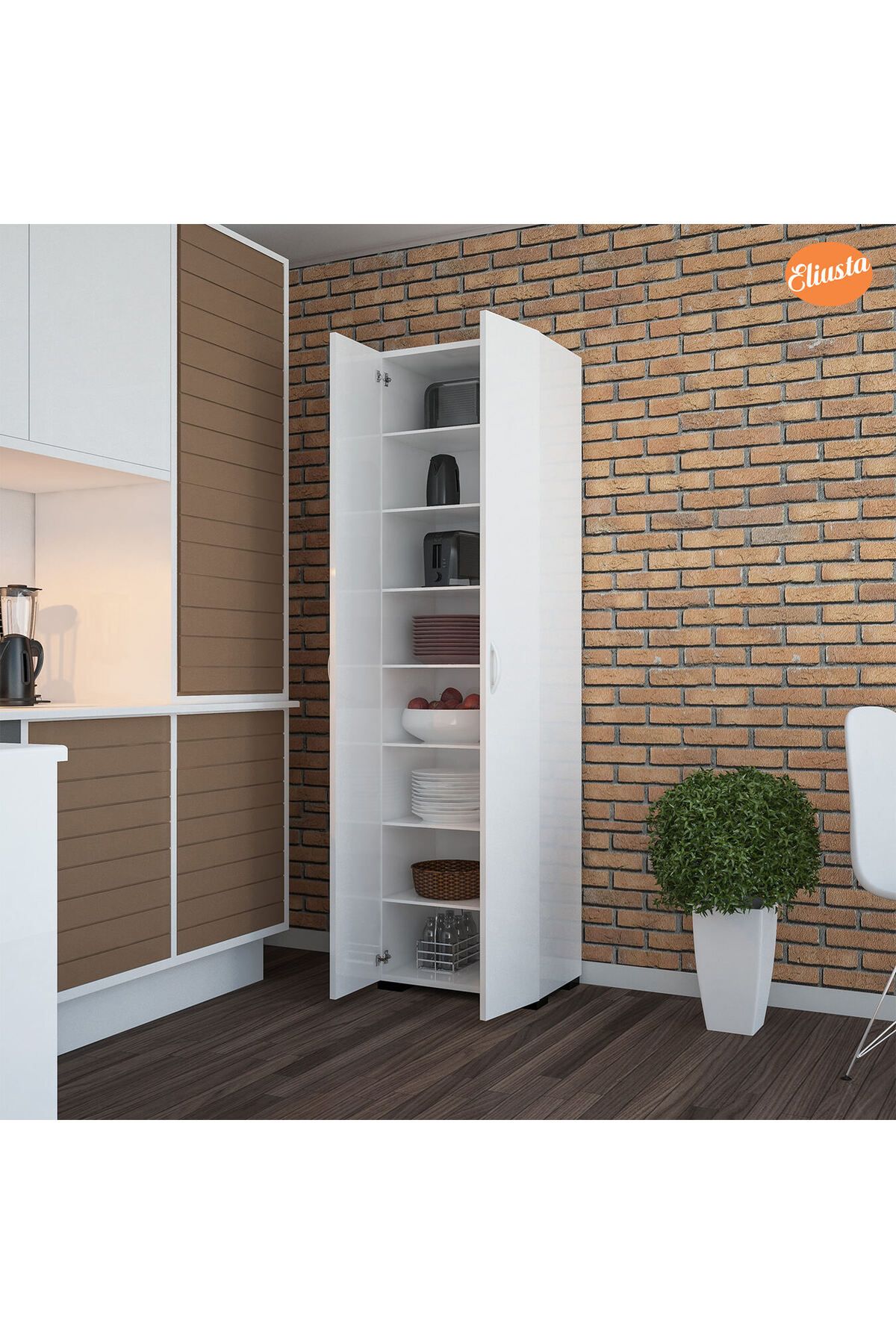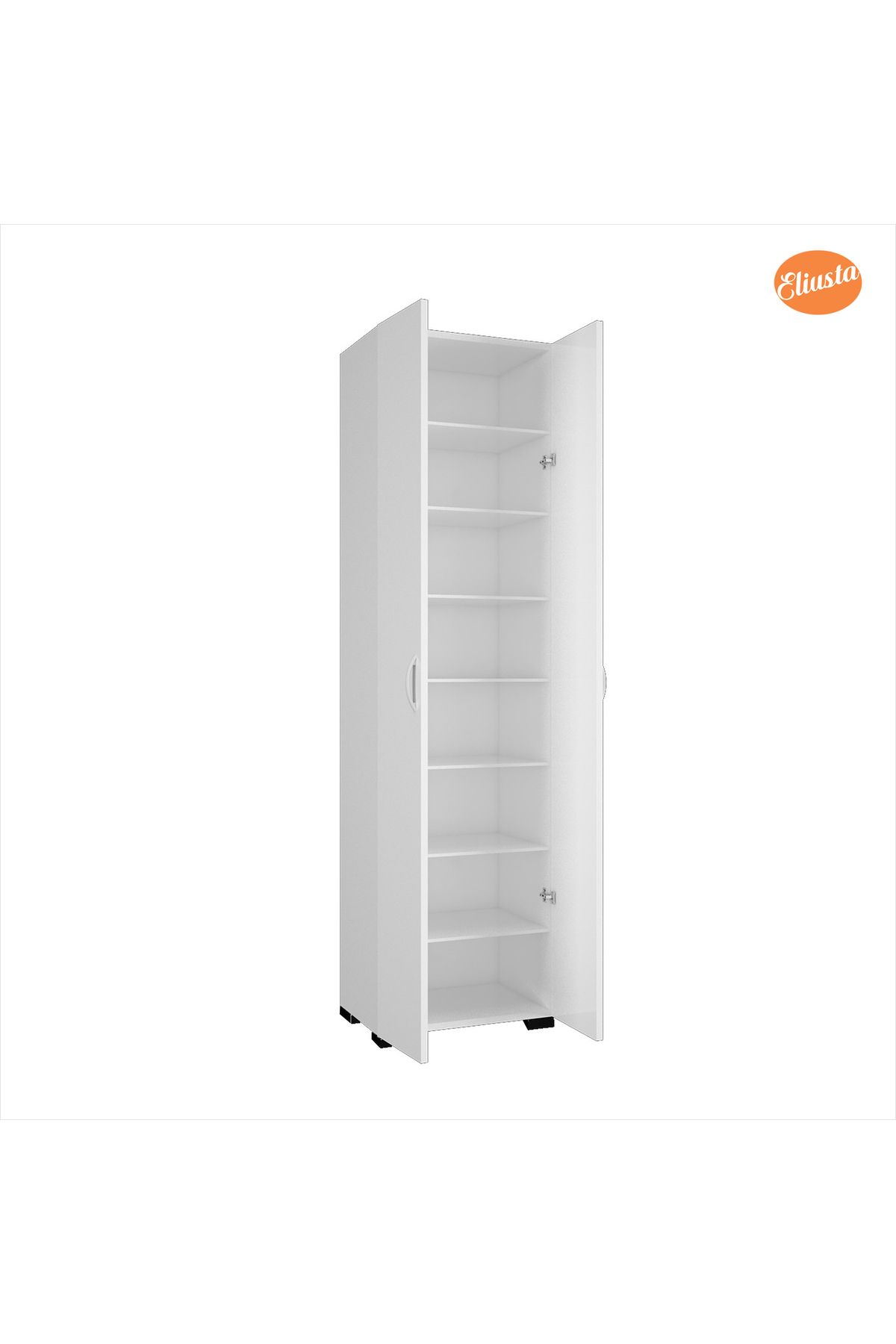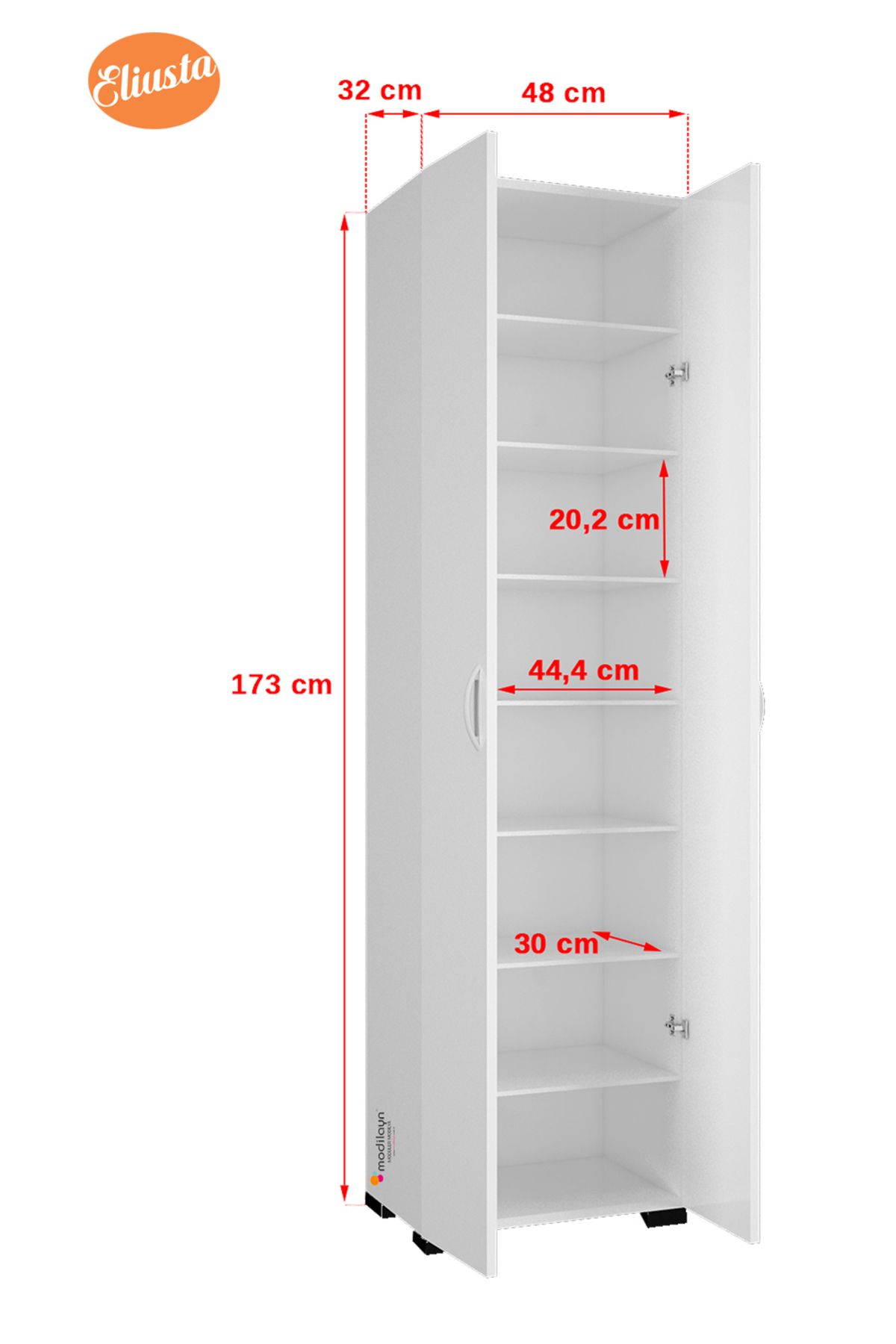 Çok amaçlı mutfak dolabı, sabit 3 adet 18 mm rafı ile fonksiyoneldir. Sabit raflar, alt parça, üst parça ve orta parça olarak yerleştirilir.; 173 x 48 x 32 cm ölçülerinde tasarlanan çok amaçlı banyo dolabı, banyonuzda da banyo malzemelerini, havlu ve kişisel bakım ürünlerini koyabileceğiniz bir dolap olarak kullanıma uygundur.; Sabit rafların yanı sıra daha işlevsel bir kullanım açısından 6 adet seyyar rafa sahip olan kapaklı banyo dolabı rafları 8 mm ölçüde tasarlanır.; 2 kapak ve toplam 8 bölmeden oluşan raflı banyo dolabı ergonomik kullanıma uygun ölçülerde tasarlandığından çok amaçlı kullanımlar için uygundur.; Geniş rafları sayesinde fincan takımları, yemek takımları, baharlıklar, havlular, kavanozlar ve bakliyatları taşıyabilen suntalam banyo dolabı son derece dayanıklı üretilir.; 1 kalitede 18 mm buz beyazı olarak üretilen yeni nesil çok amaçlı dolap, kulp, menteşe ve ayakları uzun yıllar paslanmadan, kırılmadan kullanılabilecek kalitededir.; TSE onaylı olan malzemelerle montajı yapılan tasarım, 10 cm ayakları ile yerden yüksek konumlandırılır. Böylece banyoda suya maruz kalmadan kullanılabilir.;
