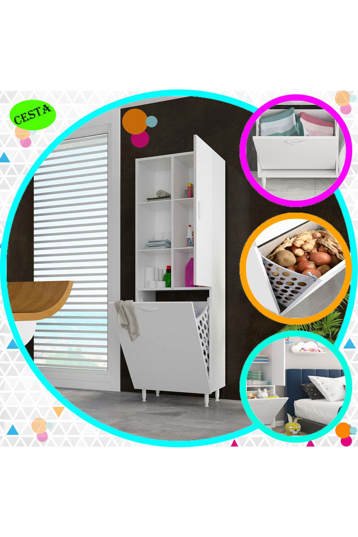 Suntalam malzemesi sayesinde dayanıklı ve uzun ömürlü kullanım sunar; Sepetli tasarımı ile kirli çamaşırlarınızı ve banyo malzemelerinizi düzenli bir şekilde saklamanızı sağlar; Mutfak dolabı olarak da kullanılabilme özelliği ile mutfakta da pratik bir depolama çözümü sunar;