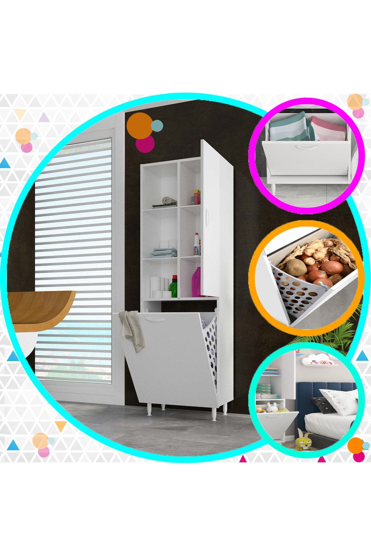 Kapaklı tasarımı sayesinde, içerisindeki eşyaların tozdan ve dış etkenlerden korunmasını sağlar; Çok amaçlı kullanım imkanı sunar; mutfak dolabı, kirli çamaşır dolabı, banyo dolabı veya oyuncak dolabı olarak tercih edilebilir; Sepetli yapısı ile düzenli bir görünüm sağlar ve eşyaların kolayca yerleştirilmesine olanak tanır;