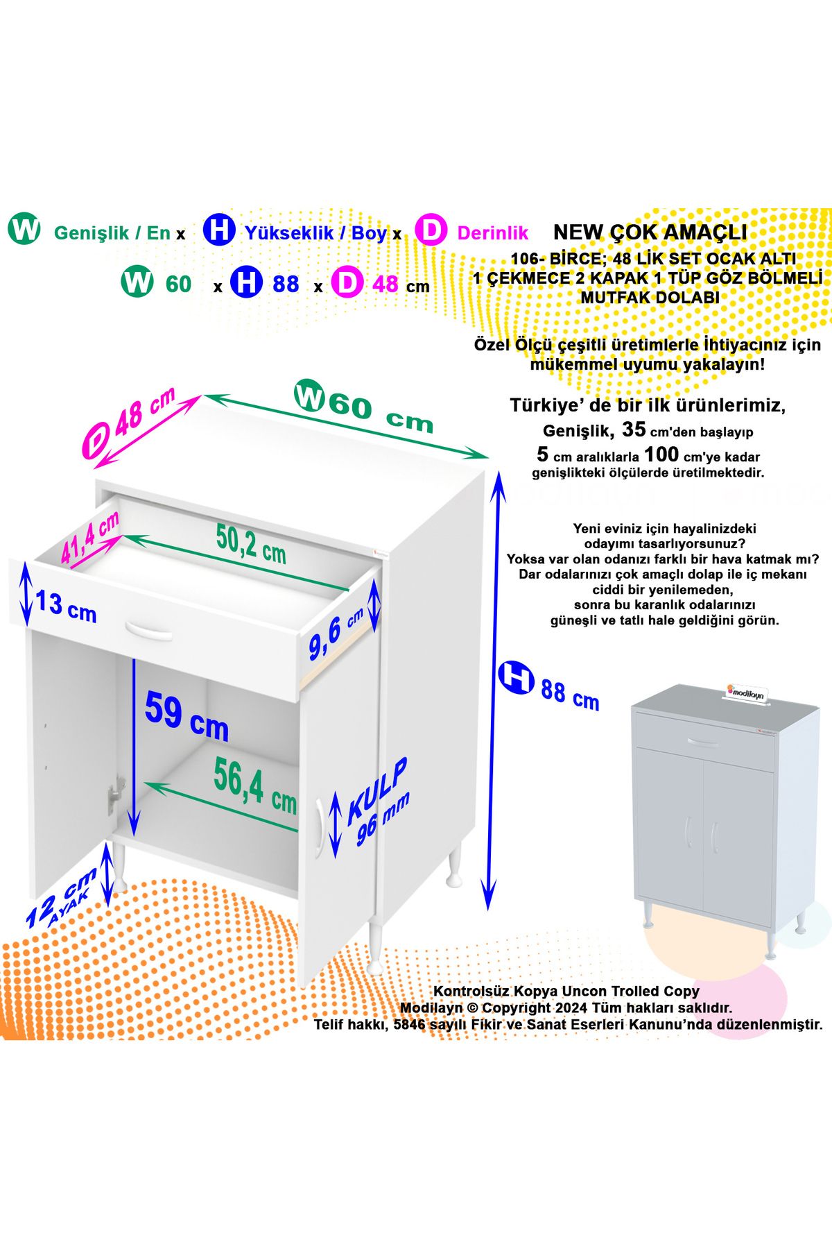 Çok Amaçlı Dolap Mutfak Dolabı Banyo Dolabı Ofis Dolabı Çekmeceli