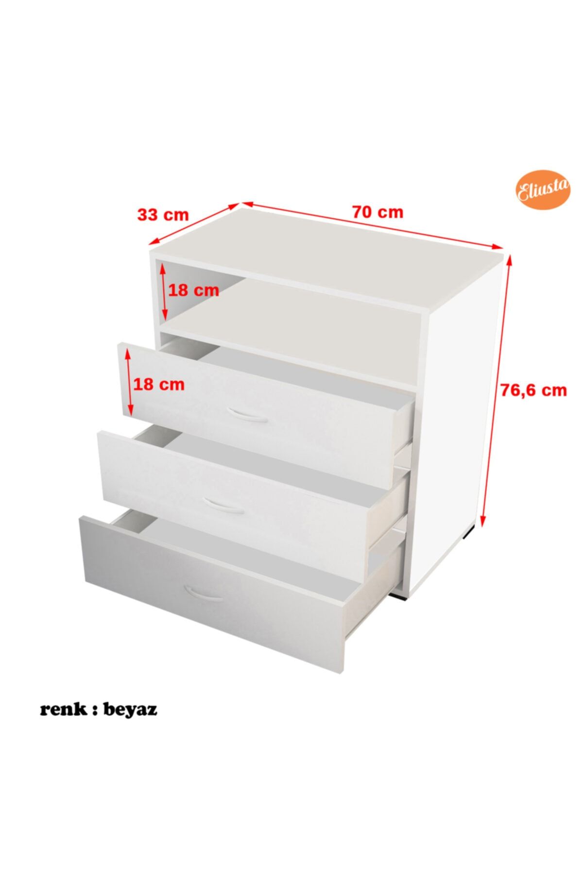 Ürün ölçüleri; En (genişlik) : 70 cm ; Boy (yükseklik) : 76,6 cm ; Derinlik : 33 cm ; Şifonyerimiz, 3 adet geniş çekmece ve 1 açık bölmeden oluşur. Ergonomik kullanıma uygun ölçülerde tasarlanmıştır. Geniş raf sayesinde takılarınızı, kitaplarınızı, biblolarınızı daha birçok ortalıkta görünmesini istemediğiniz her şeyi tek bir yerde toplayabilirsiniz. Ürün resimlerindeki aksesuarlar teşhir amaçlı olup, fiyata dahil değildir. Çok amaçlı kullanım alanı; Otel, pansiyon, apart, genç odası, banyo, mutfak, ofis, balkon, kiler, antre gibi alanlarda kullanıma uygundur. * kullanılan malzeme ; 1. Kalite 18mm bt buz beyazı orma, kastamonu enteğre markalı yüksek kalite melamin yüzeye sahip yonga levha kullanılarak üretilmiştir. E1 kalitesinde olup kanserojen madde içermez ve anti bakteriyeldir. Yonga levha kenarbant pvs 0, 40 ve 1 mm kullanılmaktadır. Iso 9001 ve tse belgesine sahiptir. * kullanılan aksesuarlar ; Çevreye ve sağlığa zararsız kanserojen madde içermez. Kulp, menteşe ve ayaklar uzun yıllar sorunsuz bir şekilde kullanabileceğiniz 1. Sınıfta,tse onaylıdır. Menteşe ve raylar samet - Yeniler - Yeni nesil pls kulp, 10 cm ayaklar ve diğer aksesuarlar mesan marka kullanılmaktadır. Kullanılan ham madde ve tüm montaj malzemeleri, %100 türk malı ıso 9001 ve tse belgesine sahiptir. 1. Kalite olarak türkiye? De üretilmektedir. ( satın alınan ürünle ekonomiye can verin ) Garanti süresi; Üretim ve işçilik hatalarına karşı 3 yıl garantilidir. Montaj; ürün kurulu olmadan (demonte olarak) kutulu halde teslim edilmektedir.Paket kolay ve eğlenceli kurulum için gerekli kurulum şeması,çıkmaktadır. Ek olarak sadece yıldız tornavida yeterlidir.Kutu içinde tüm parçalar kurulum için gerekli olan kurulum klavuzu malzeme torbası çıkmaktadır. Demonte olarak gönderilen mobilyalarda ürün kurulumu yapıldıktan sonra iadesi kabul edilmemektedir. Herhangi bir sorunla karşılaşılırsa tarafımıza telefon ya da mesaj yolu ile ulaştığınızda sorunun çözümü için elimizden gelen yardımı esirgemeyeceğimiz konusunda kuşkunuz olmasın lütfen.