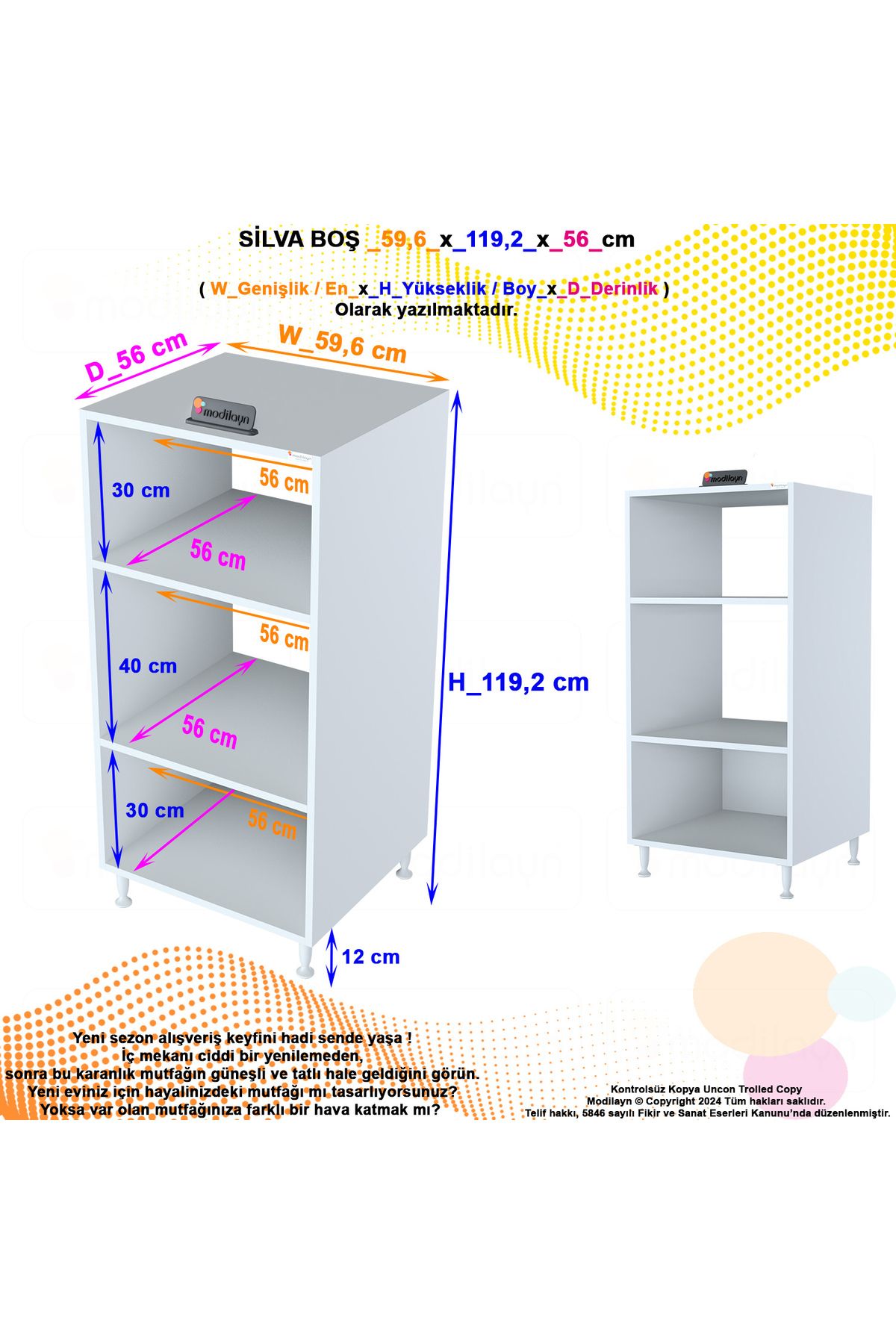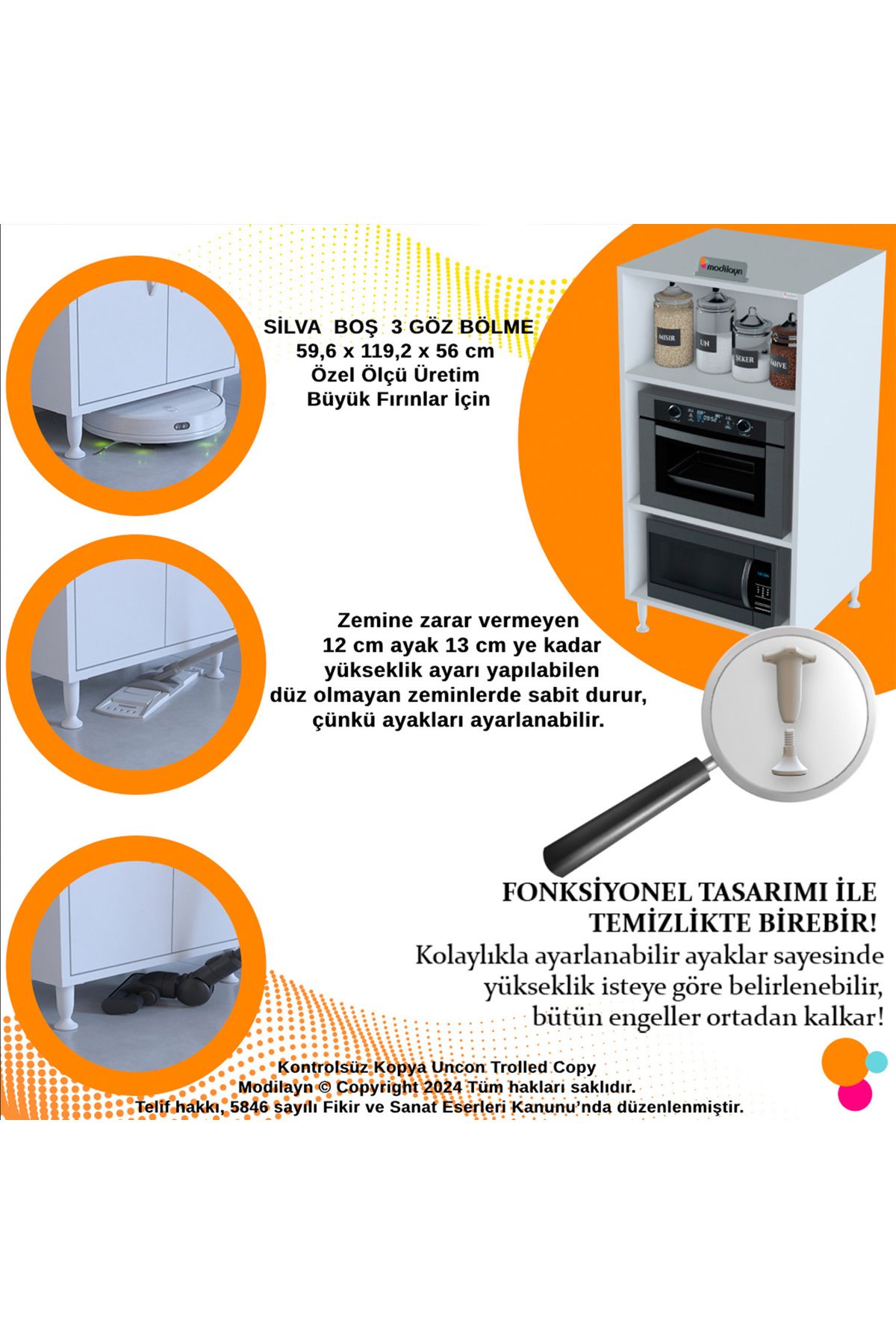 Modilayn Modüler Mobilya Genel Özellikleri; M-16-503B- Modilayn SİLVA 59,6 x 119,2 x 56 cm 3 Göz Özel Üretim Mini Midi Mikrodalga Fırın Dolabı *Ölçülendirme Yöntemi; (Genişlik / En xYükseklik / Boy xDerinlik ) Olarak yazılmaktadır.; *Ürün Kurulu Halde Dış Ölçücü; 59,6 x119,2 x 56 cm *Boş Kapaksız 1 Büyük Göz Bölme; 56 x 40 x56 cm *Boş Kapaksız 2 Küçük Göz Bölme; 56 x 30 x 56 cm *Ürün Çeşidi Bilgilendirme; Ürün görselindeki mobilya harici tüm aksesuarlar dekorasyon amaçlı kullanılmıştır.; Odayı büyütmek için yaratıcı mobilya seçenekleri Bazı mobilyalar çok fonksiyonlu olmasıyla küçük odalarda büyük işler başarabilir.; Herhangi bir eşyaya çarpmadan, istiflenmiş hissi vermeden nasıl küçük bir odayı daha geniş gösterebilirsin? Metrekaresi ne olursa olsun her alanın taşıdığı potansiyel vardır.; Bu nedenle küçük odaları dekore ederken iç tasarıma iki kere önem vererek odanın ne amaçla kullanılacağına hizmet etmek gerekiyor.; Küçük odaları daha geniş gösterecek birkaç püf noktasıyla yeni bir yerleşme planı oluşturabilirsin.; Odanı daha geniş ve kullanışlı hale getirecek harika fikirlere birlikte göz atalım.; *Dolap Tipi; SİLVA Özel Ölçü Ekmeklikli Mini Midi Mikrodalga Fırın Dolabı.; Yeni eviniz için hayalinizdeki mutfak' mı tasarlıyorsunuz? Yoksa var olan mutfağınıza farklı bir hava katmak mı? Ortalıkta görünmesini istemediğiniz her şeyi tekbir dolapda toplayabilirsiniz.; *Renk; Beyaz *Garanti Süresi; 3 YIL