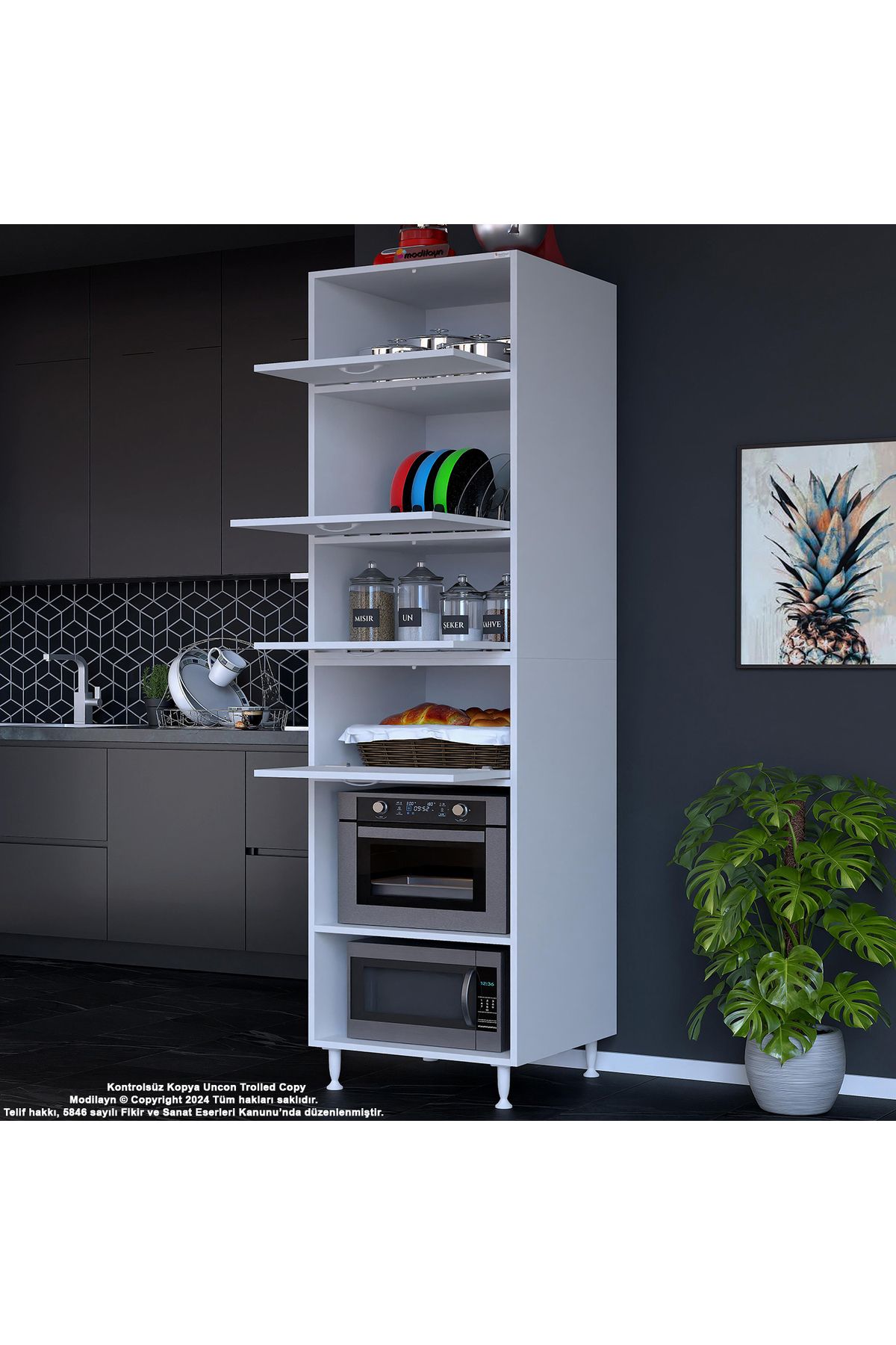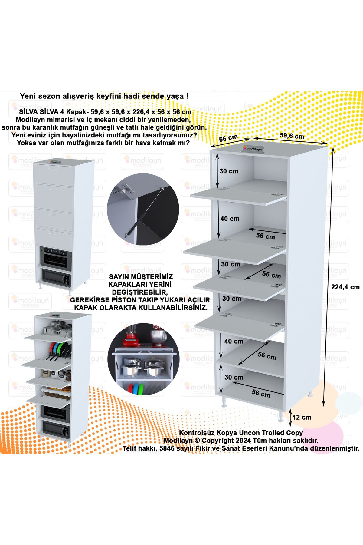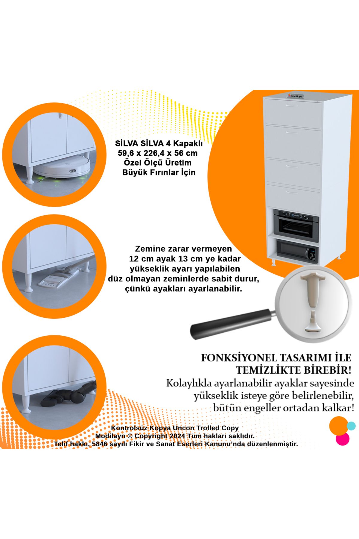18M_20-503_B_24-503- Modilayn SİLVA SİLVA 4 Kapaklı 59,6 x 226,4 x 56 cm Özel Ölçü Üretim Büyük Fırınlar İçin 6 Geniş Yüksek Derin Göz Bölmeli Mini Midi Mikrodalga Fırın Dolabı