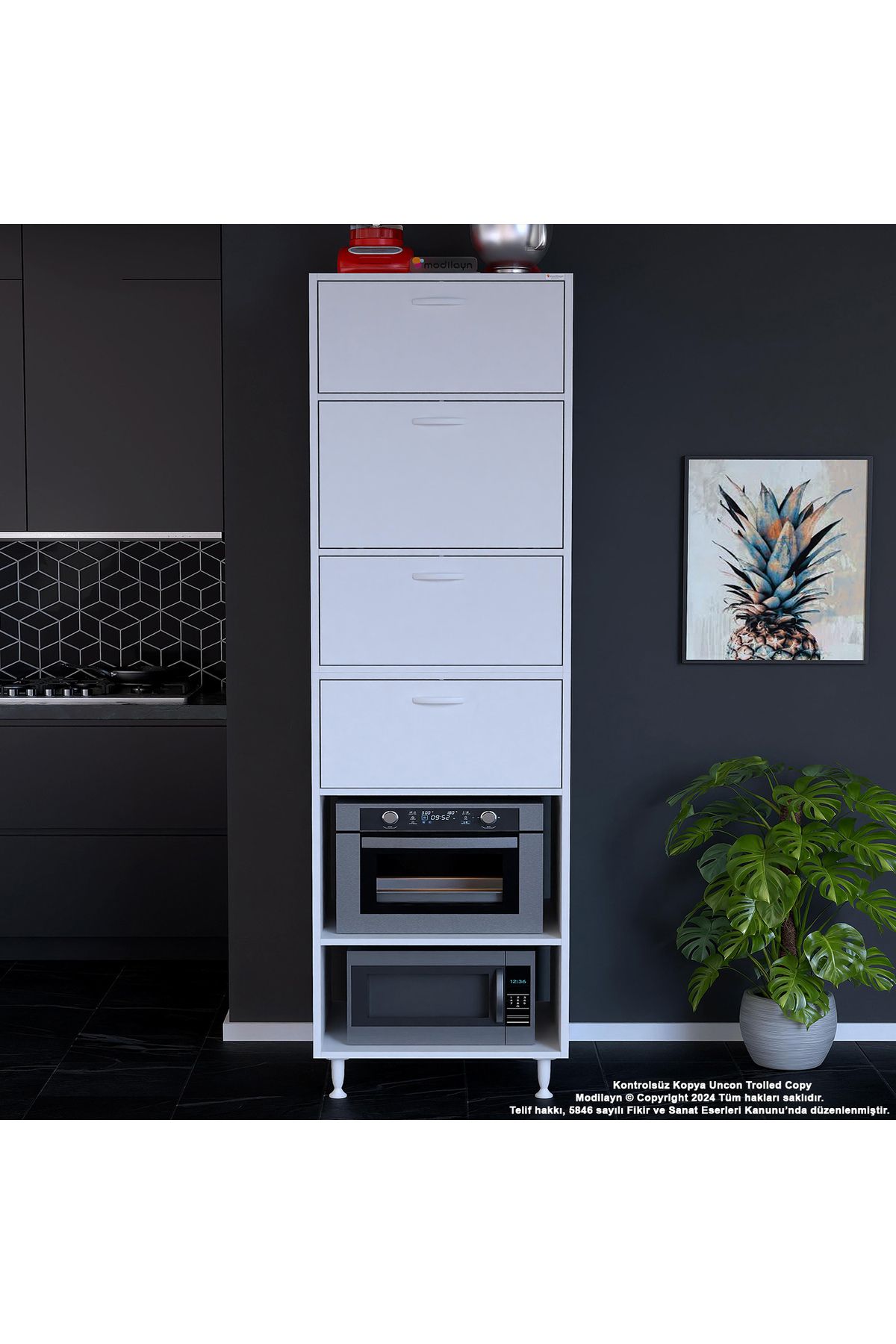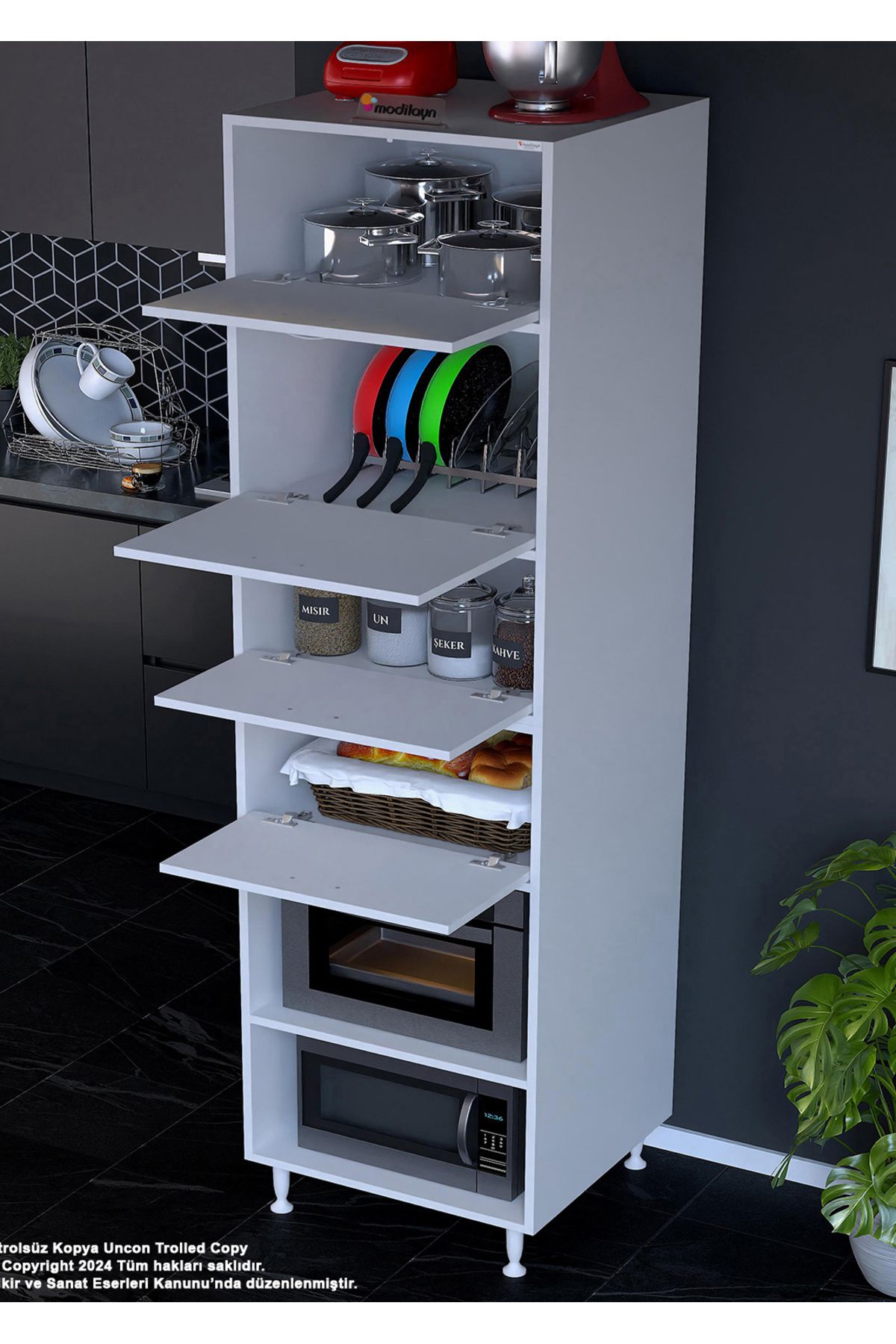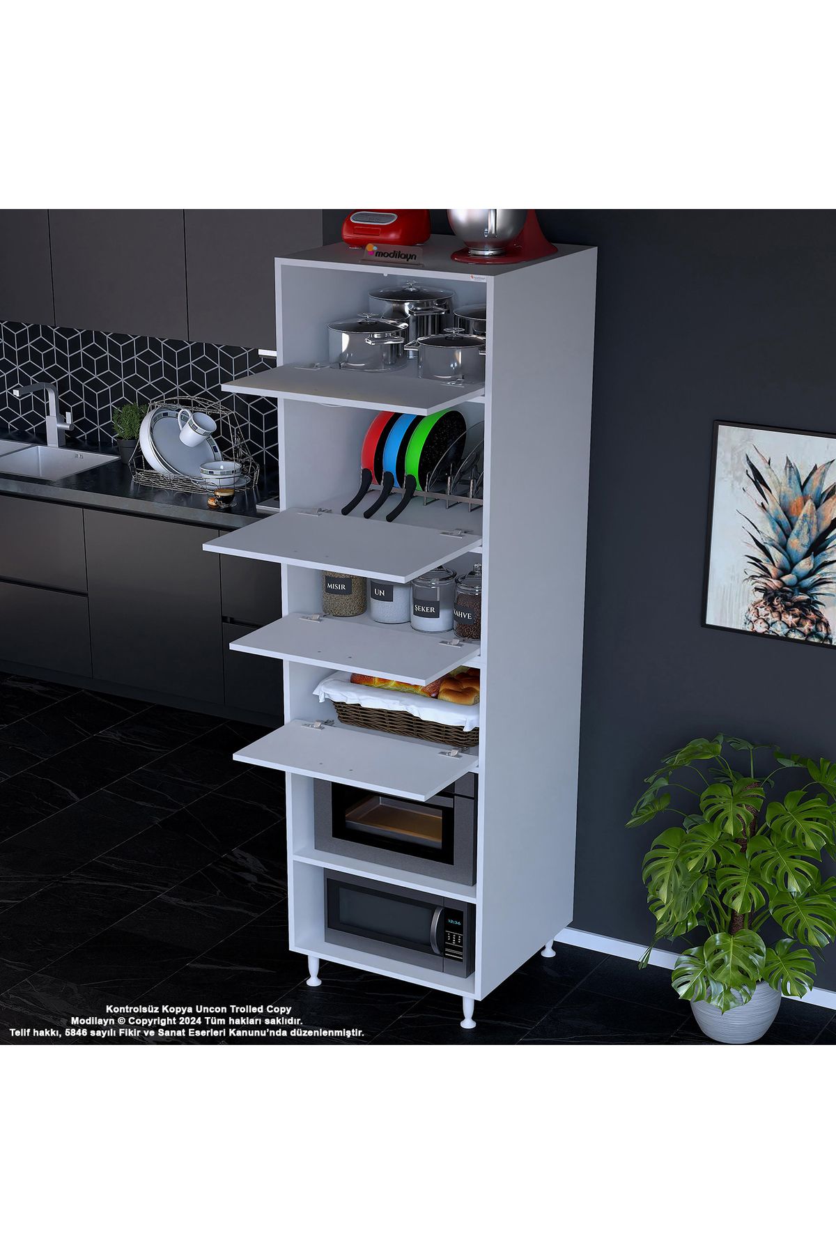 18M_20-503_B_24-503- Modilayn SİLVA SİLVA 4 Kapaklı 59,6 x 226,4 x 56 cm Özel Ölçü Üretim Büyük Fırınlar İçin 6 Geniş Yüksek Derin Göz Bölmeli Mini Midi Mikrodalga Fırın Dolabı