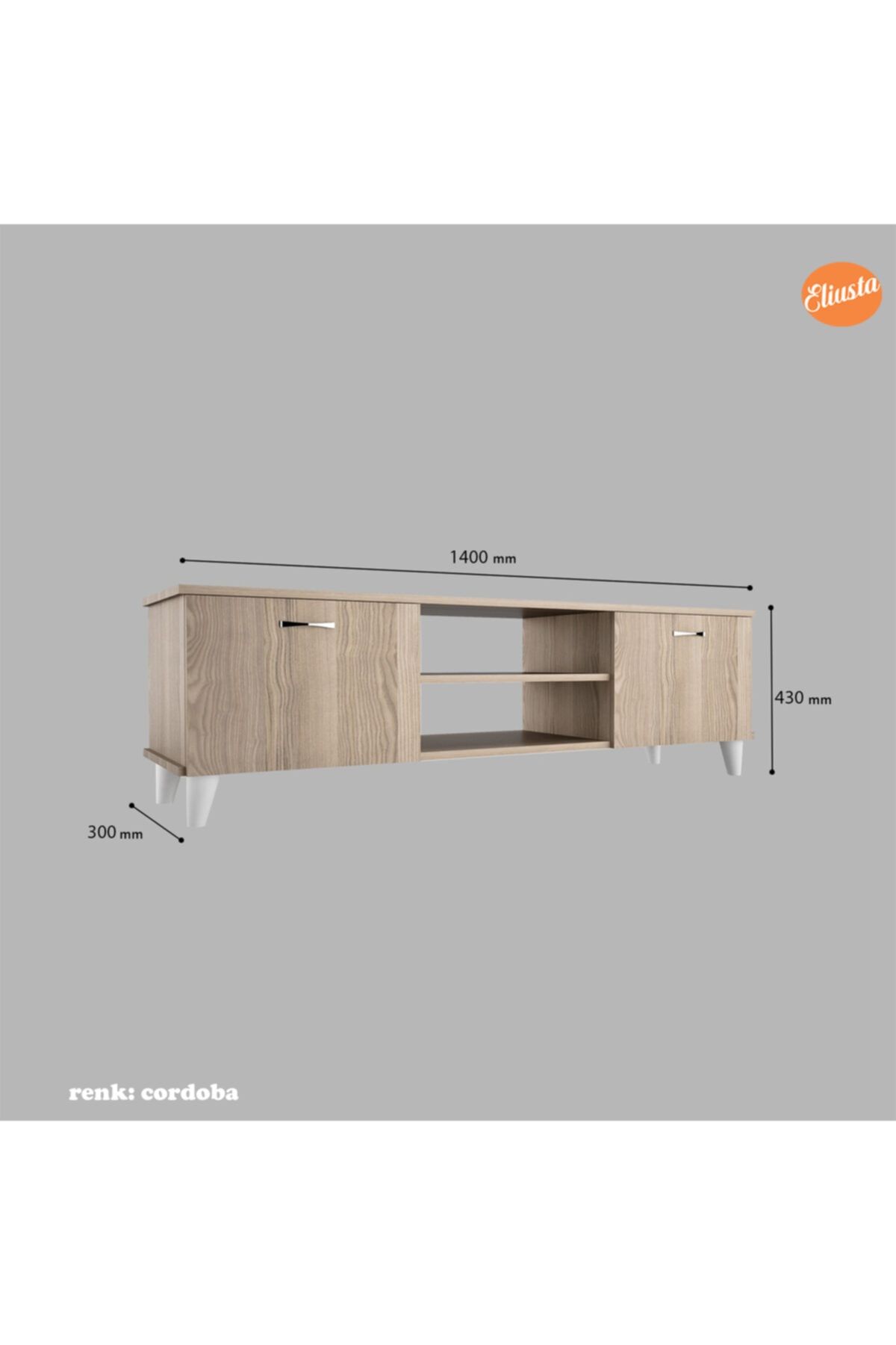 Ürün özellikleri En (genişlik) : 140 cm ; Boy (yükseklik) : 43 cm ; Derinlik : 30 cm ; Ürünümüz iki kapak, 4 bölmeden oluşur. Birkaç sezondur dikkat çeken açılı ayak trendini yakalıyor. Ergonomik kullanıma uygun ölçülerde tasarım geniş raf sayesinde televizyon,tv aksesuarı, dvd, cd, müzik setleri, kitaplar gibi eşyaları koymak için birebir. Hayatımızın vazgeçilmezleri, bu ihtiyaçları göz önünde bulundurularak tasarlanmış bu üründe hepsine yer verilmiştir. Ortalıkta görünmesini istemediğiniz her şeyi tek bir yerde toplayabilir, saklayabilirsiniz. Ürün resimlerindeki aksesuarlar teşhir amaçlı olup, fiyata dahil değildir. Ürünlerimiz, anti-Kanserojen e1 sertifikalı, avrupa standartlarında, kesinlikle sağlığa zararlı madde içermeyen, birinci sınıf, suya dayanıklı yüksek kalite melamin yüzeye sahip yonga levha kullanılarak üretilmiştir. ; Montaj; ürün kurulu olmadan (demonte olarak) kutulu halde teslim edilmektedir.Paket kolay ve eğlenceli kurulum için gerekli kurulum şeması,çıkmaktadır. Ek olarak sadece yıldız tornavida yeterlidir.Kutu içinde tüm parçalar kurulum için gerekli olan kurulum klavuzu malzeme torbası çıkmaktadır.